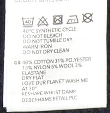 - Material Breakdown: 48% Cotton 31% Polyester 13% Nylon 5% Wool 3% Elastane