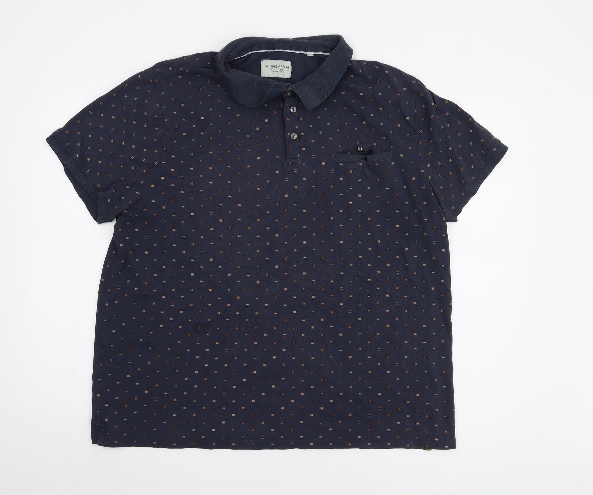 Racing Green Men's Blue Geometric 2XL Polo Shirt