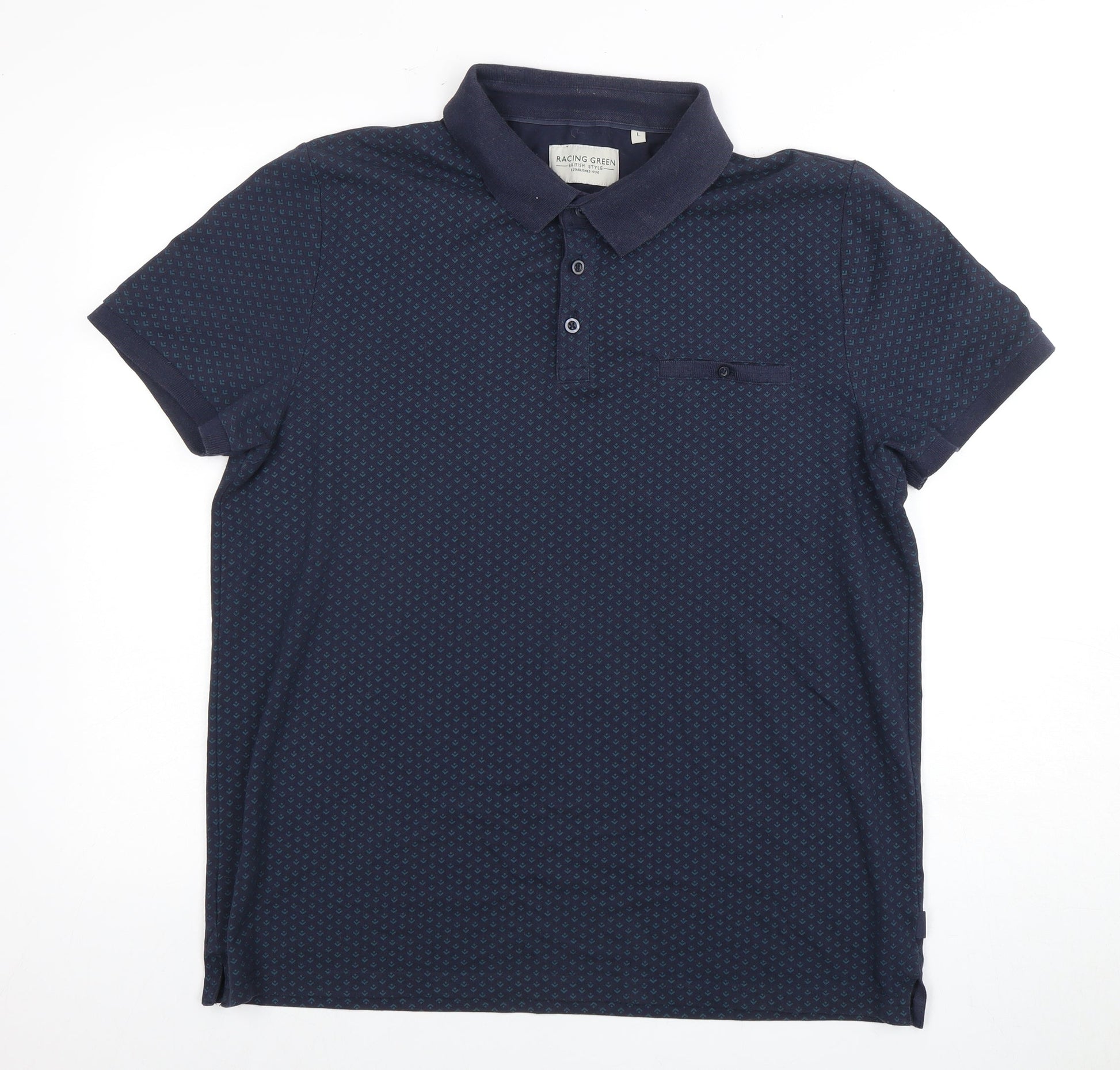 Racing Green Men's Blue Polo Shirt Size L