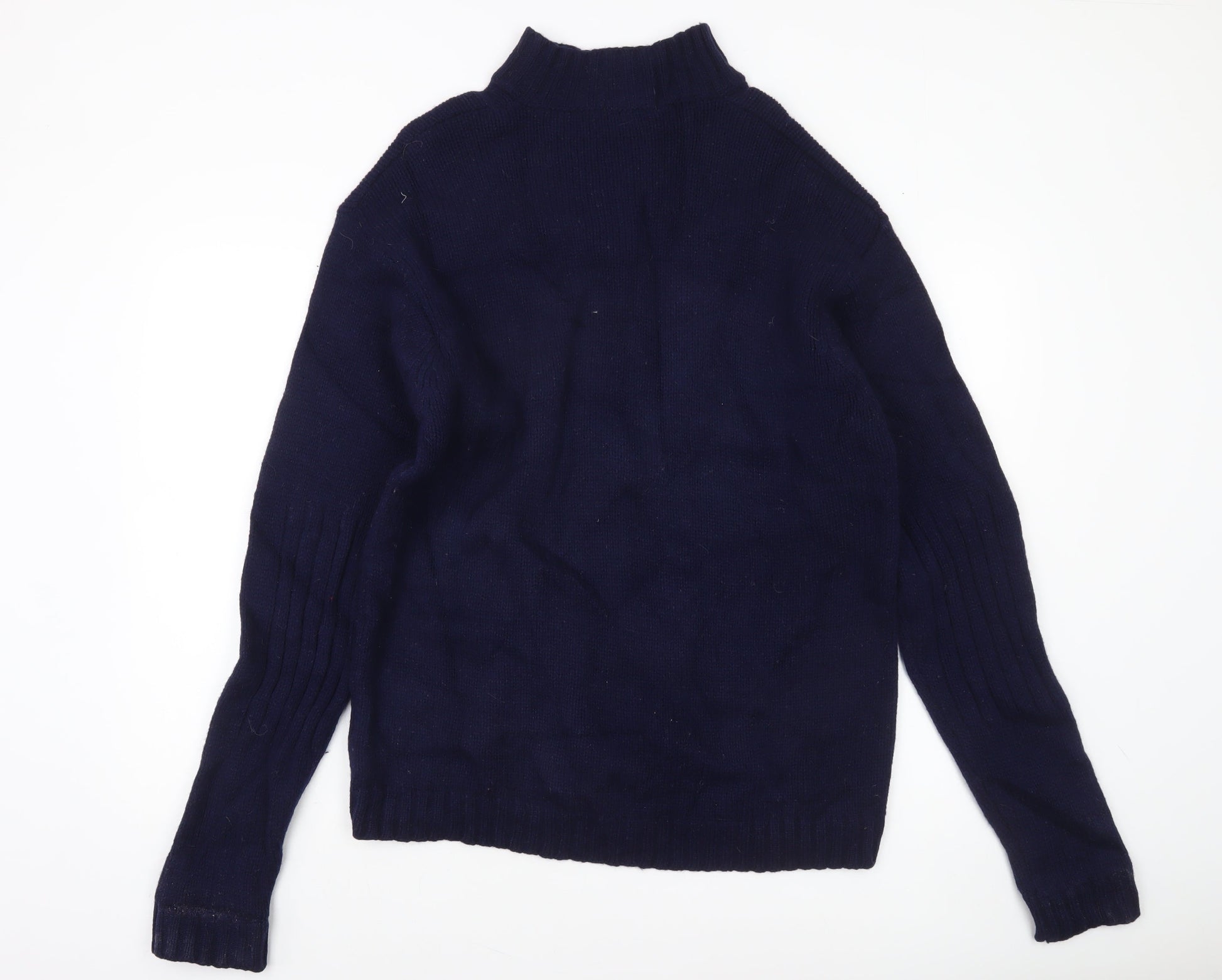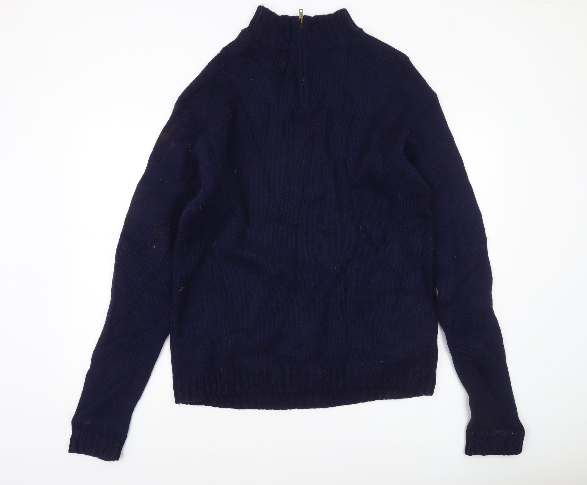 Racing Green Men's Blue Wool XL 1/4 Zip High Neck Jumper