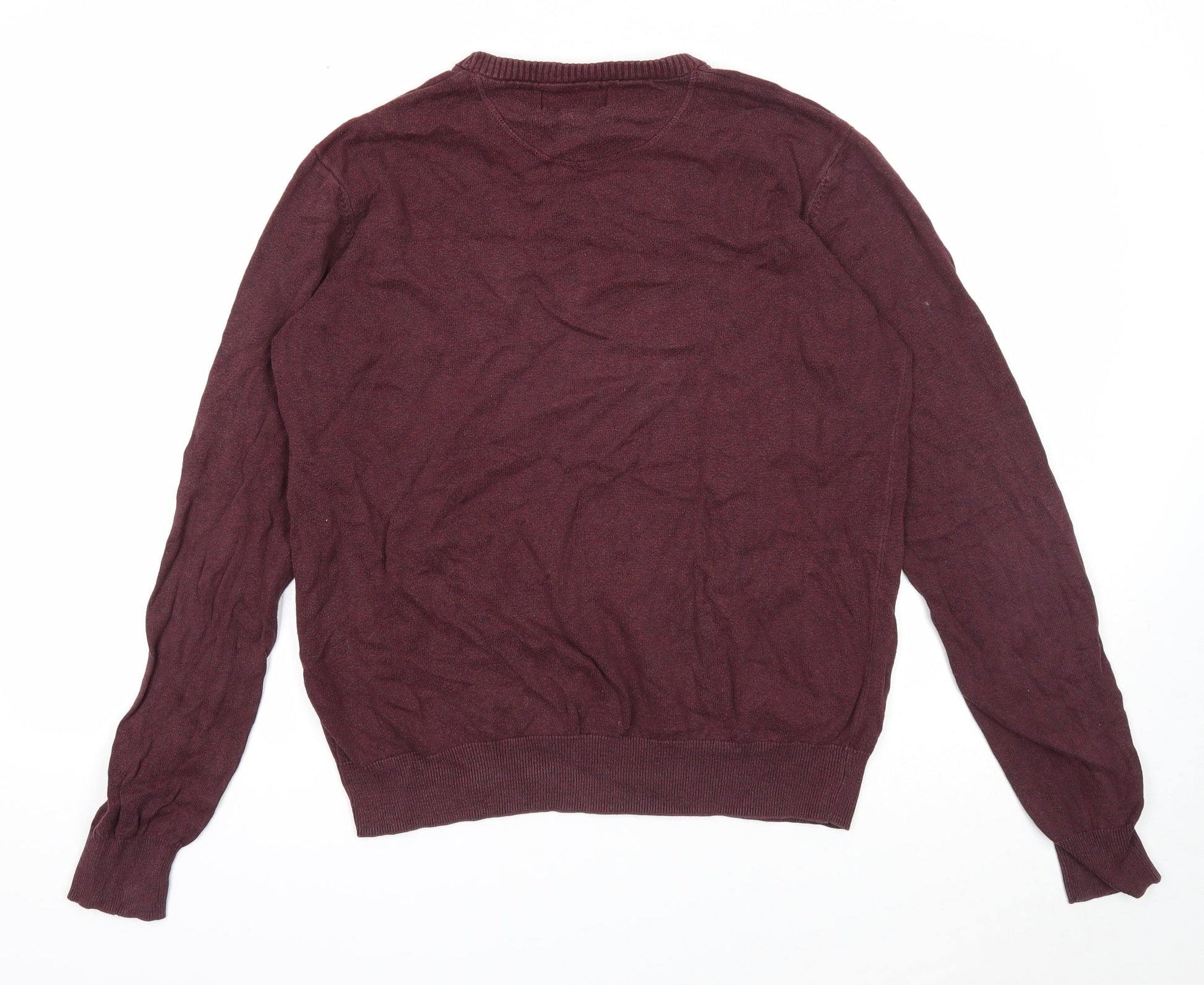 Racing Green Mens Purple Round Neck Cotton Pullover Jumper Size L