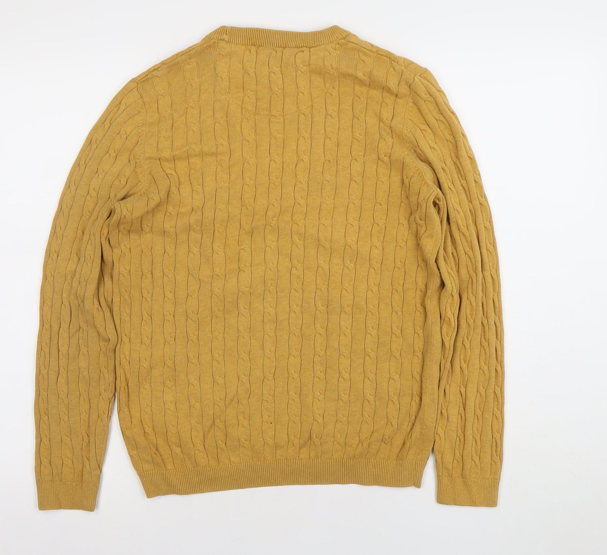 Racing Green Men's Yellow Cable Knit Cotton Jumper Size S
