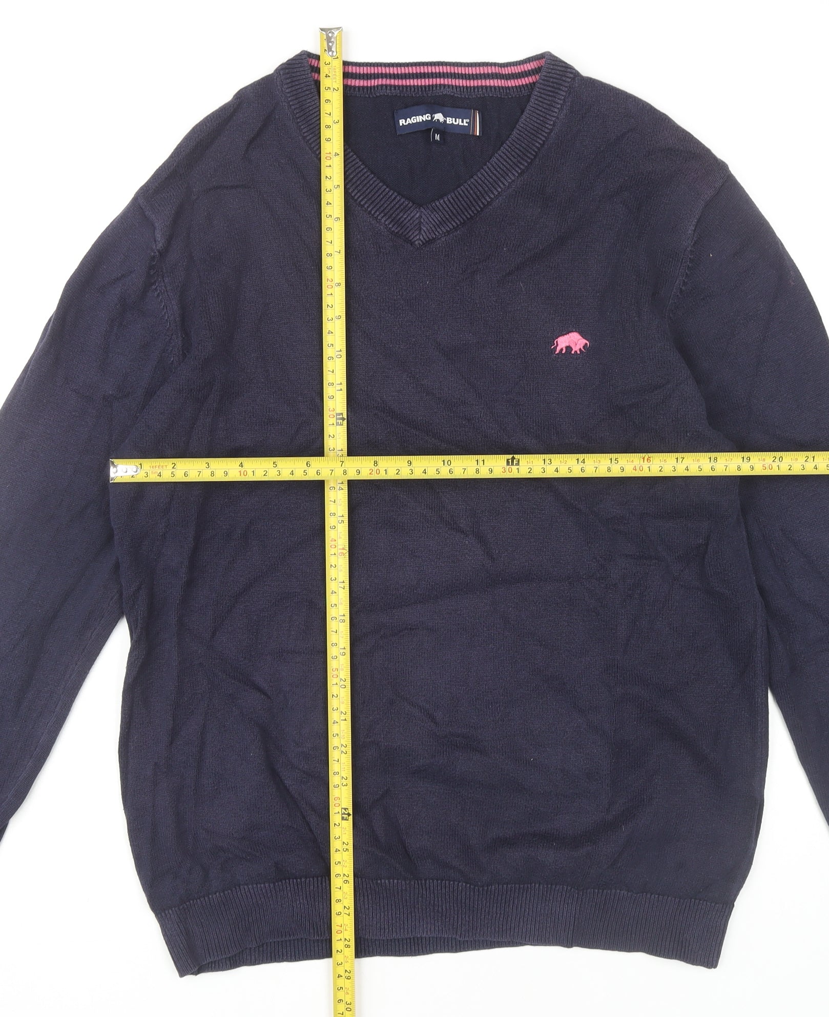 Raging Bull Men's Blue Cotton Cashmere V-Neck Jumper M