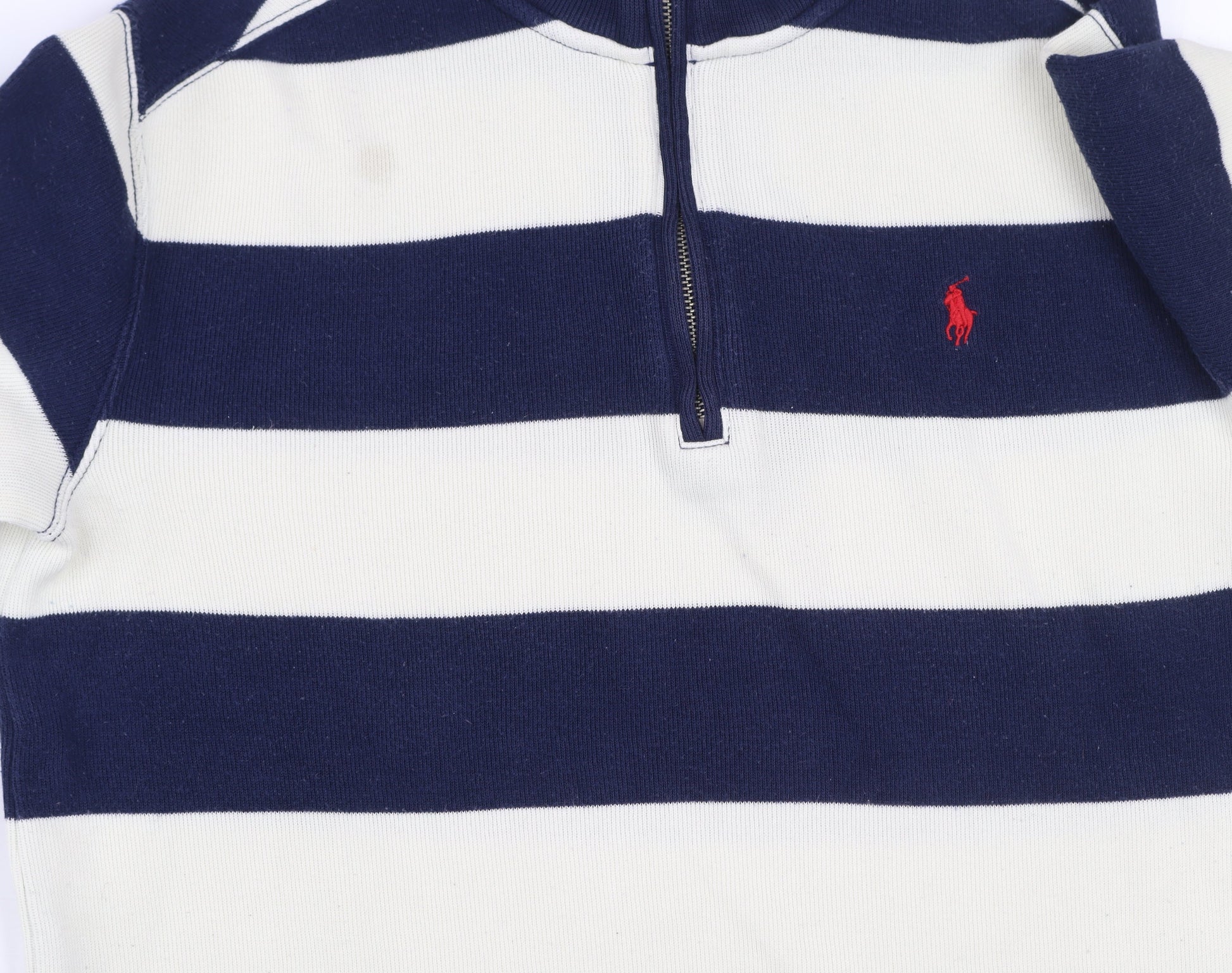 Ralph Lauren Girls Blue Striped 1/4 Zip Cotton Sweatshirt 14-16 Years