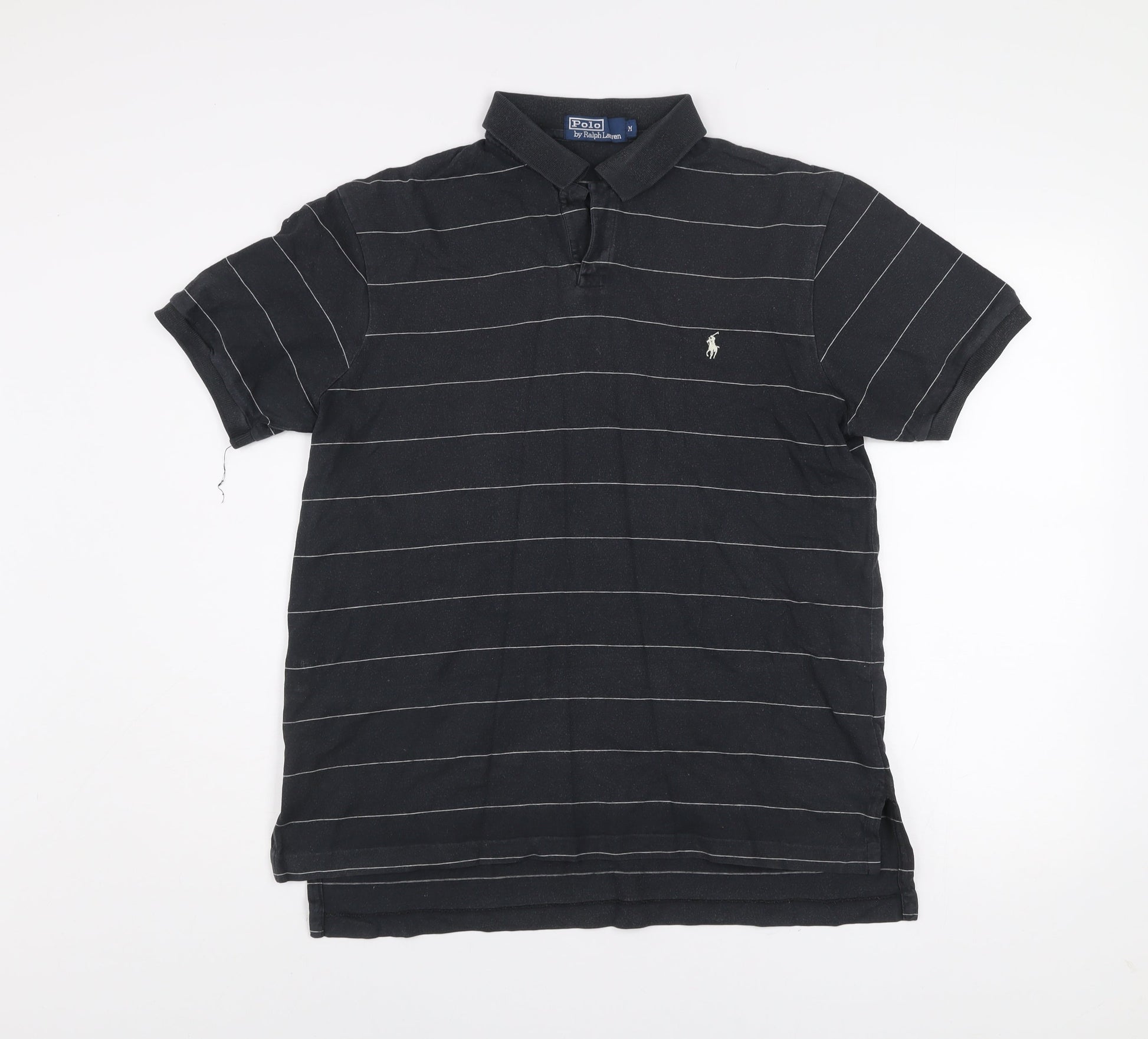 Ralph Lauren Men's Black Striped Cotton Polo Shirt Size M