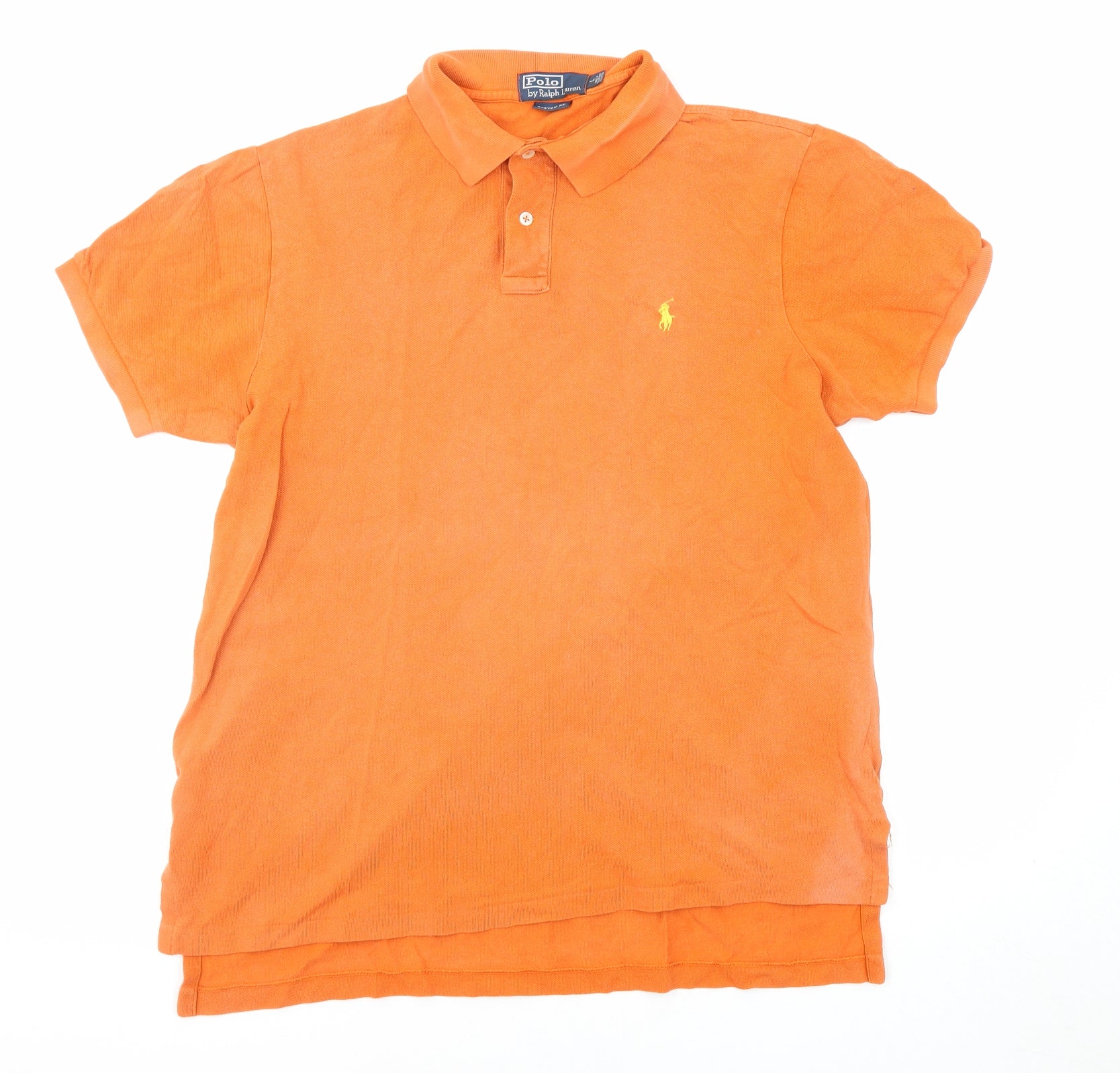 Ralph Lauren Mens Orange Cotton Polo Size L Collared Button
