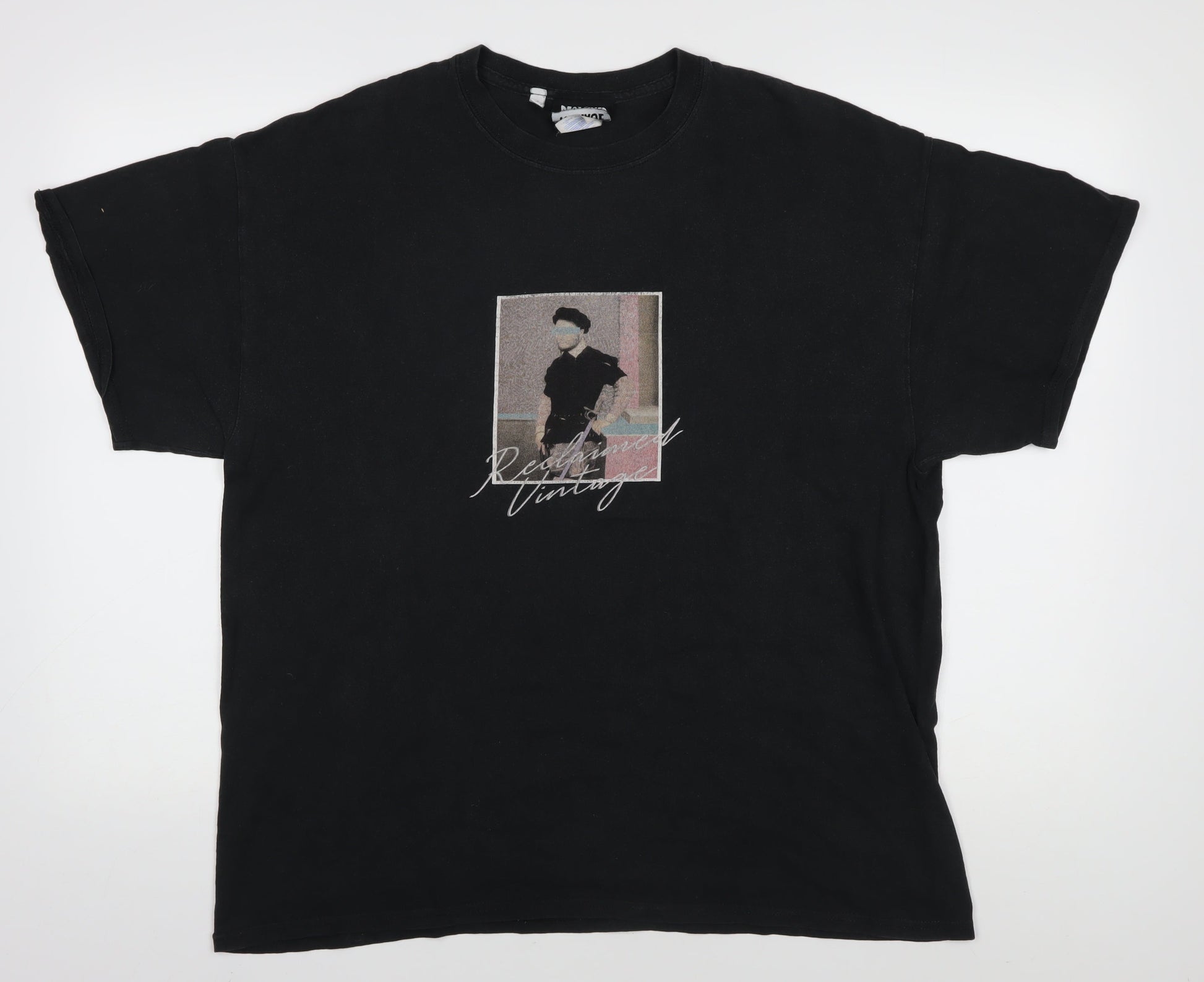 Reclaimed Vintage Men's Black Graphic T-Shirt L
