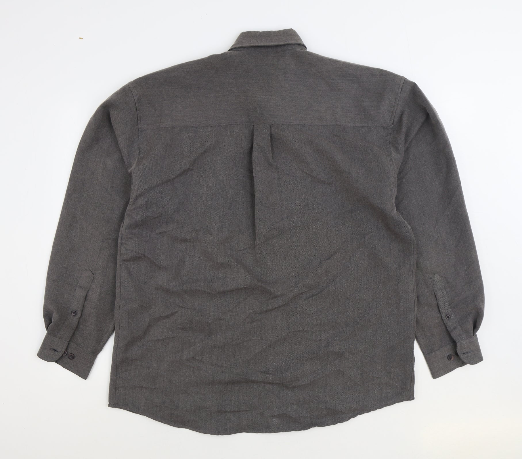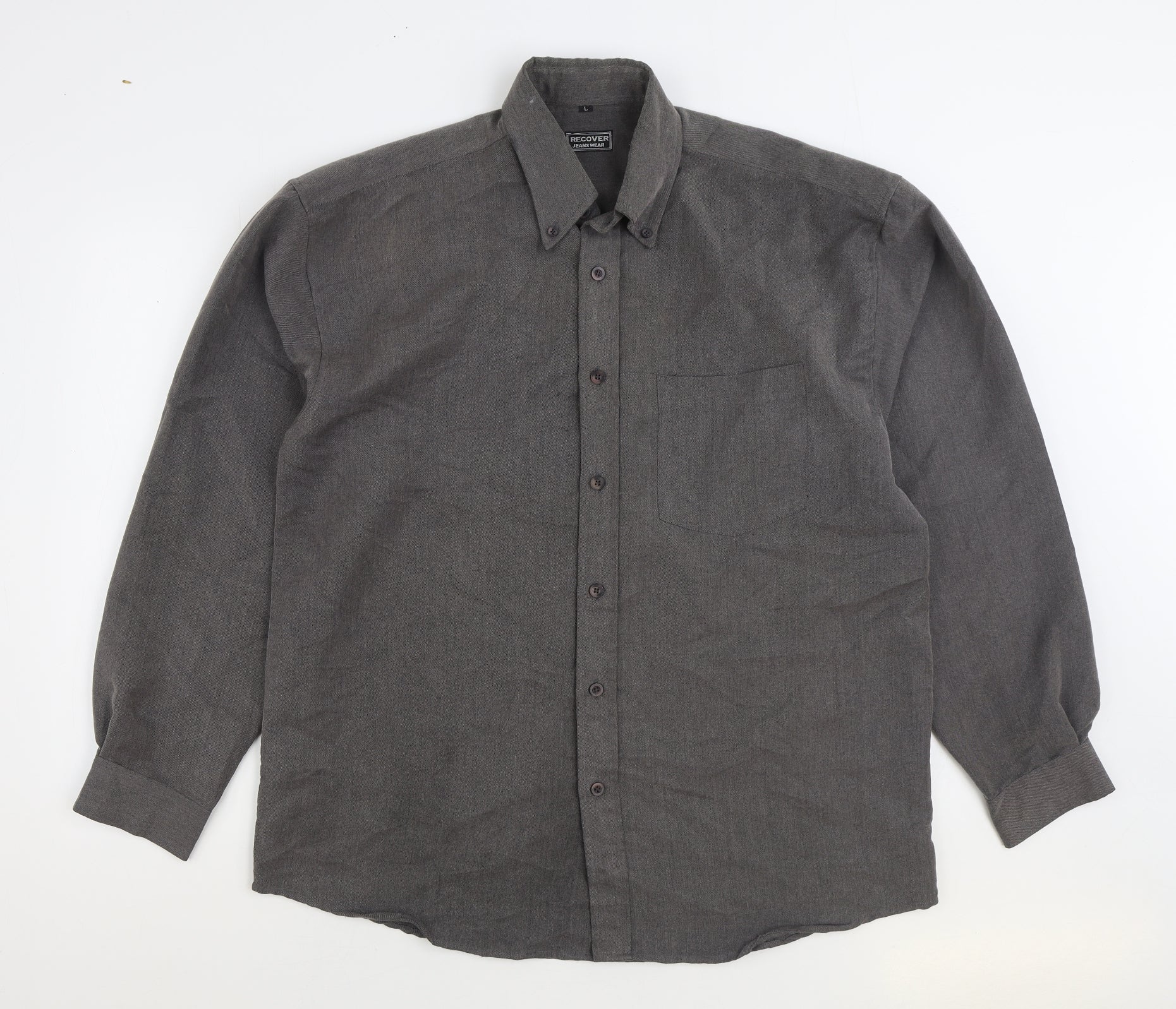 Recover Mens Grey Polyester Button-Up Size L Collared Button