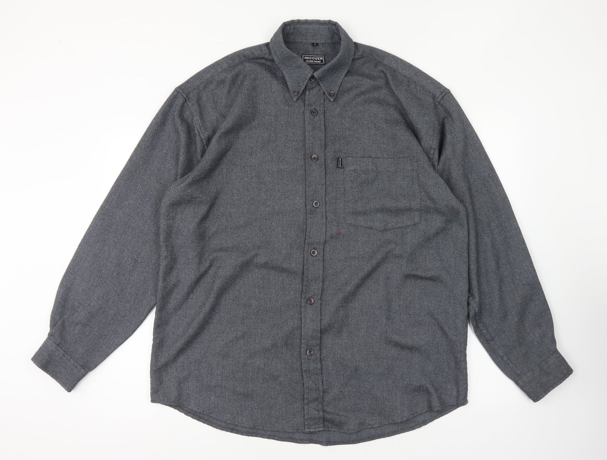 Recover Mens Grey Polyester Button-Up Size L Collared Button