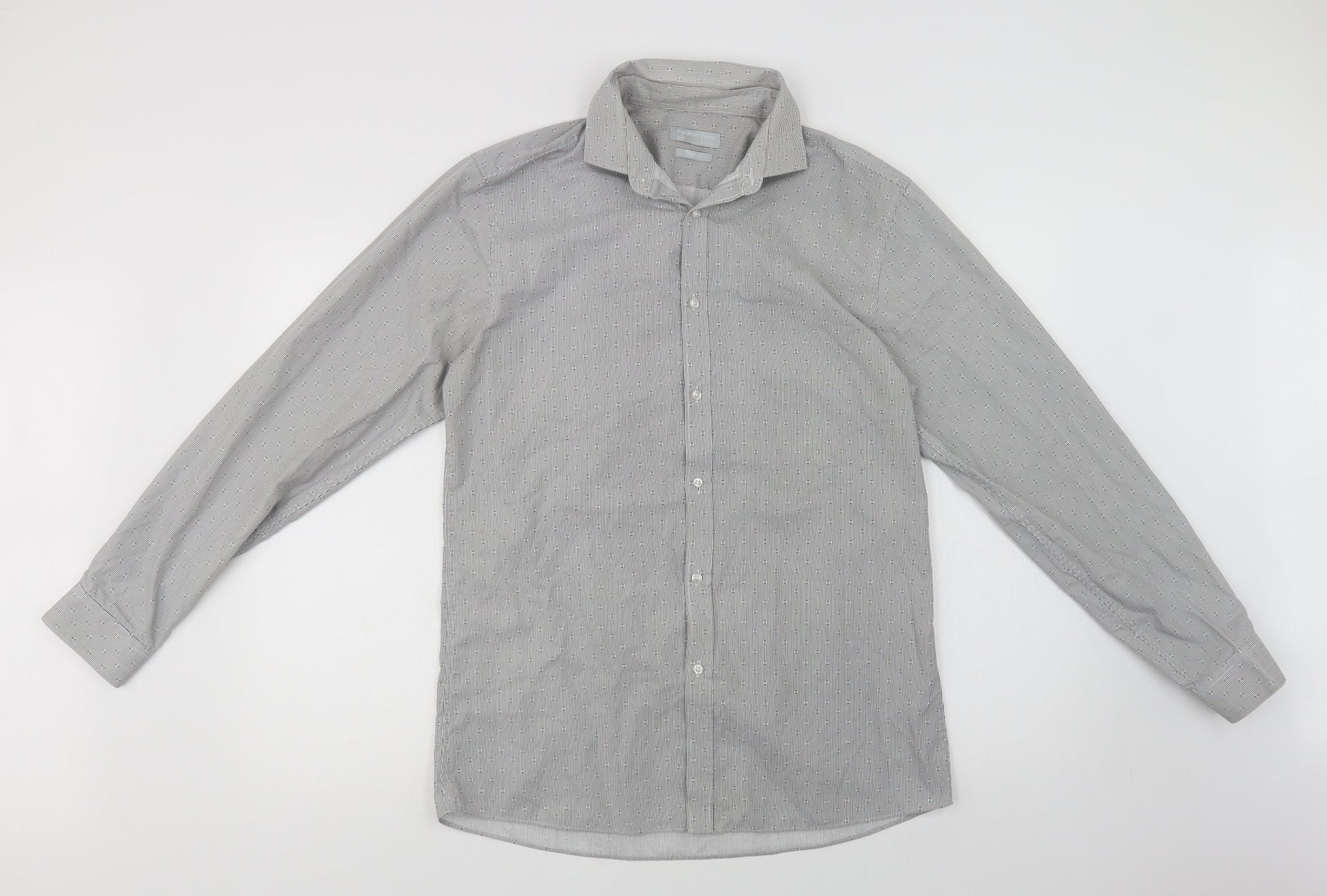 Red Herr Mens Grey Geometric Polyester Dress Shirt Size 15.5 Collared Button