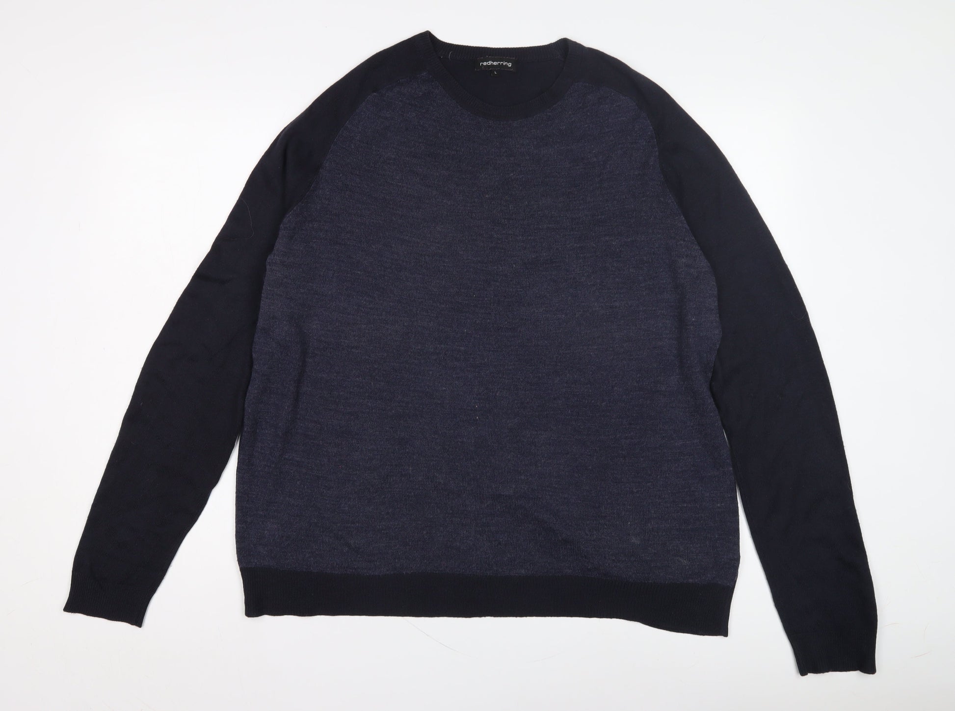 Red Herring Men’s Blue Pullover Jumper, L, Crew Neck