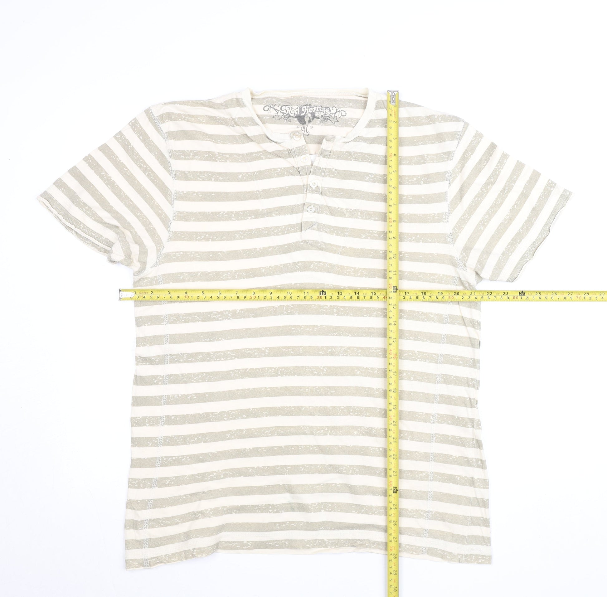 Red Herring Men's Beige Striped Henley T-Shirt Size L Cotton