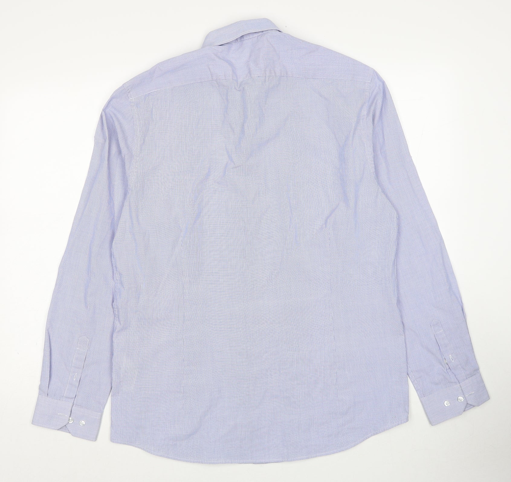 Red Herring Mens Blue Striped Polyester Button-Up Size 16 Collared Button