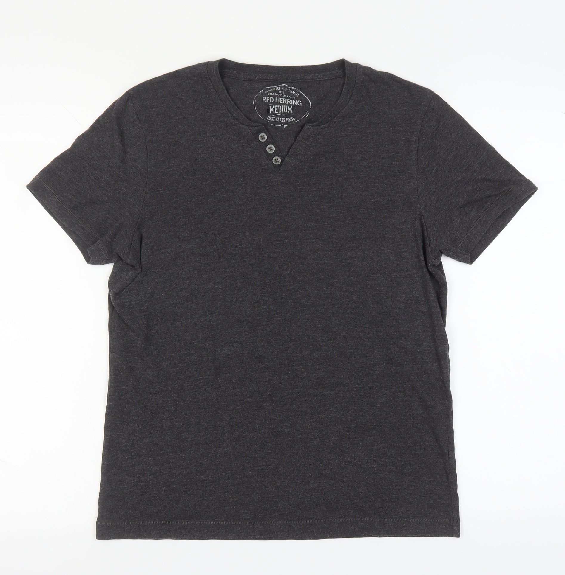 Red Herring Men's Grey Henley T-Shirt - Medium