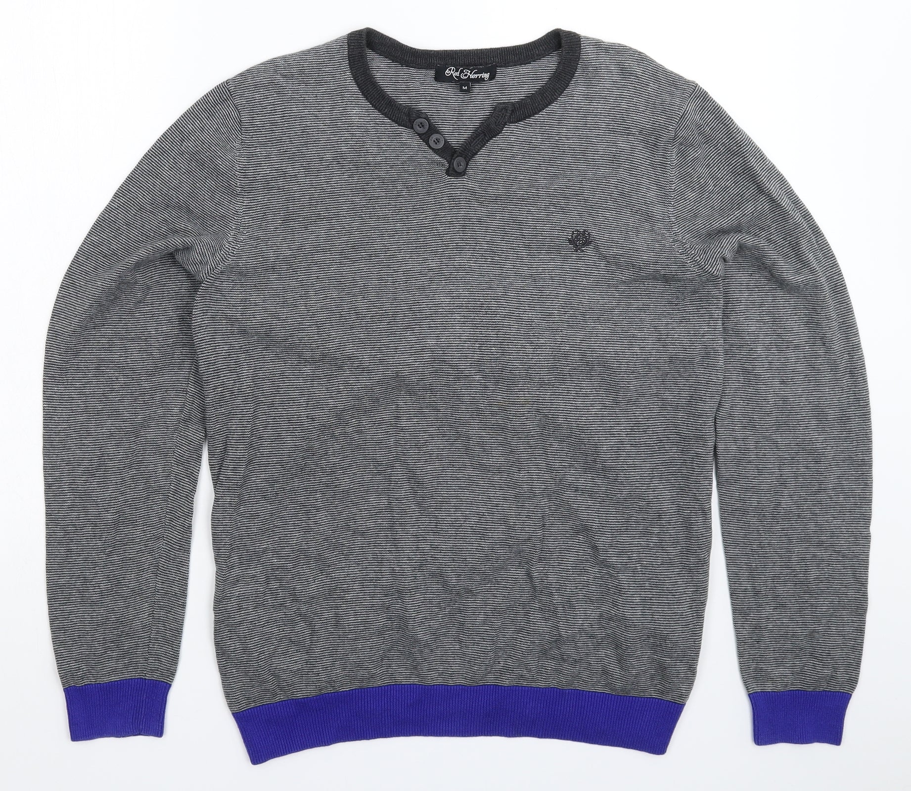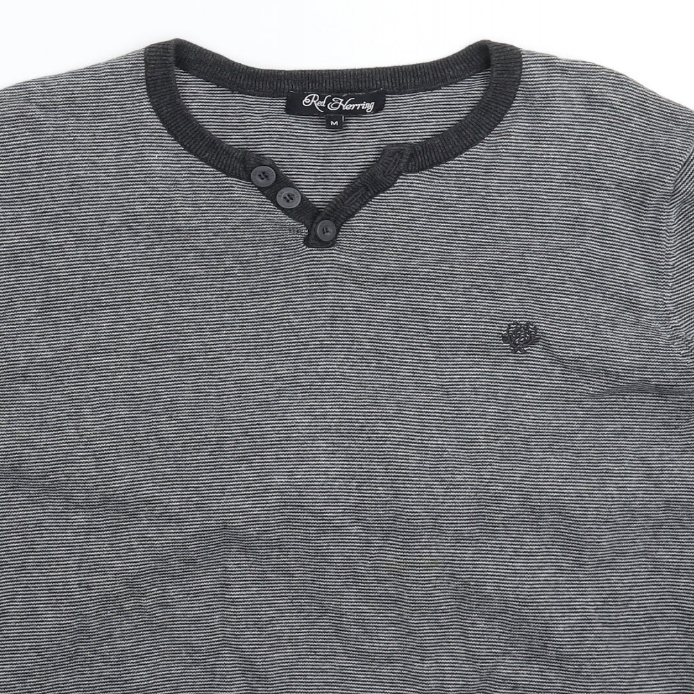 Red Herring Mens Grey Striped Knit Pullover Jumper Size M