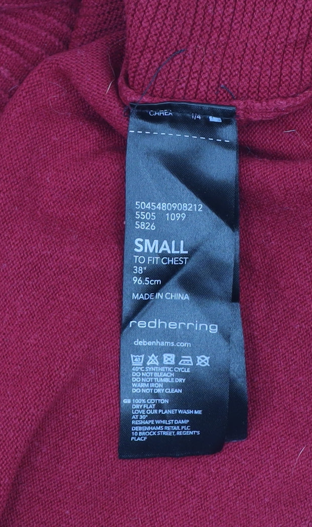 Red Herring Men's Red Cotton Crew Neck Jumper Size S