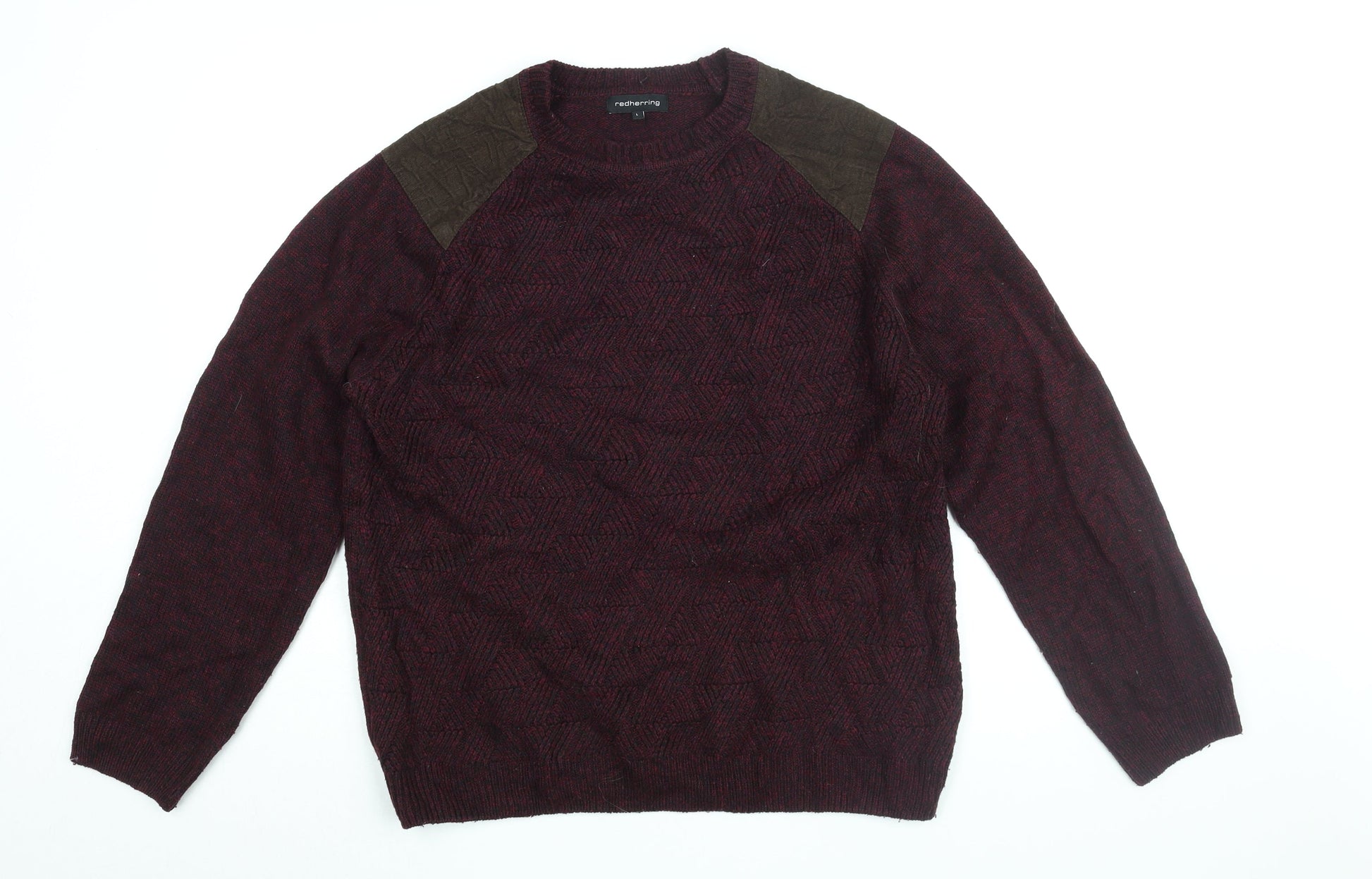 Red Herring Mens Red Round Neck Acrylic Pullover Jumper Size L Long Sleeve