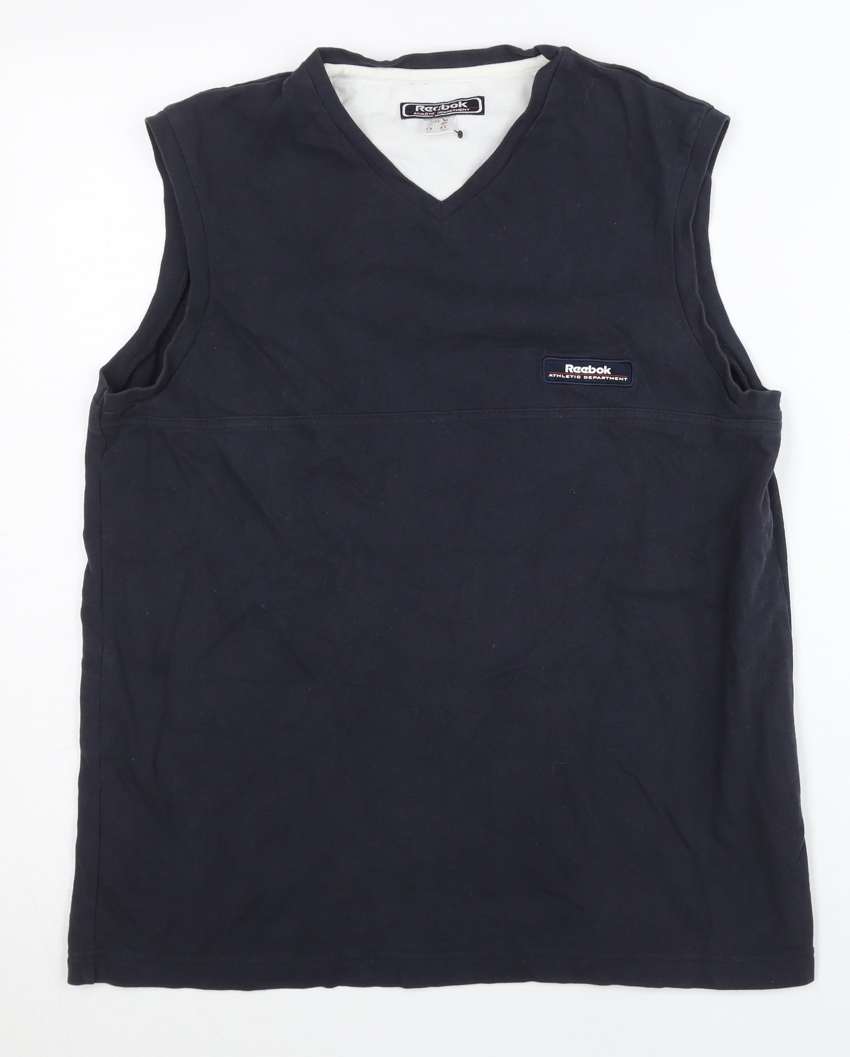 Reebok Men’s Blue Sleeveless V-Neck Sports Cotton T-Shirt M