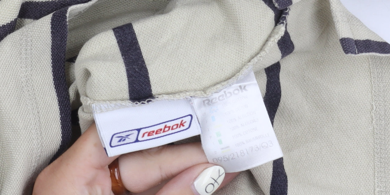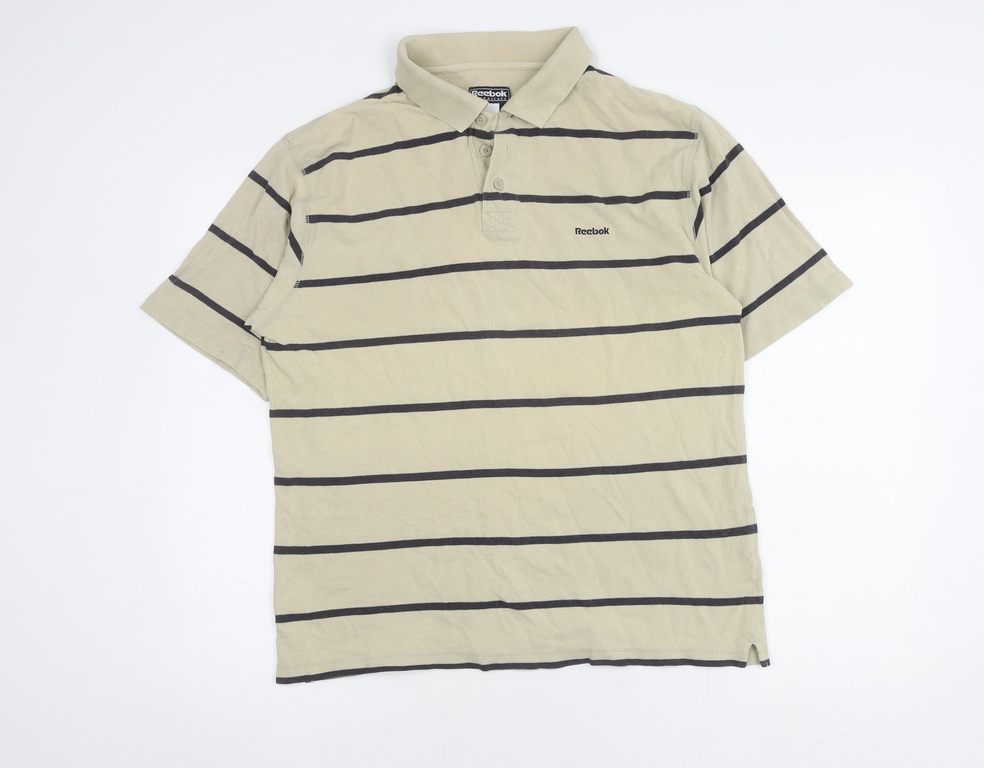 Reebok Men's Beige Striped Polo Shirt, Size L