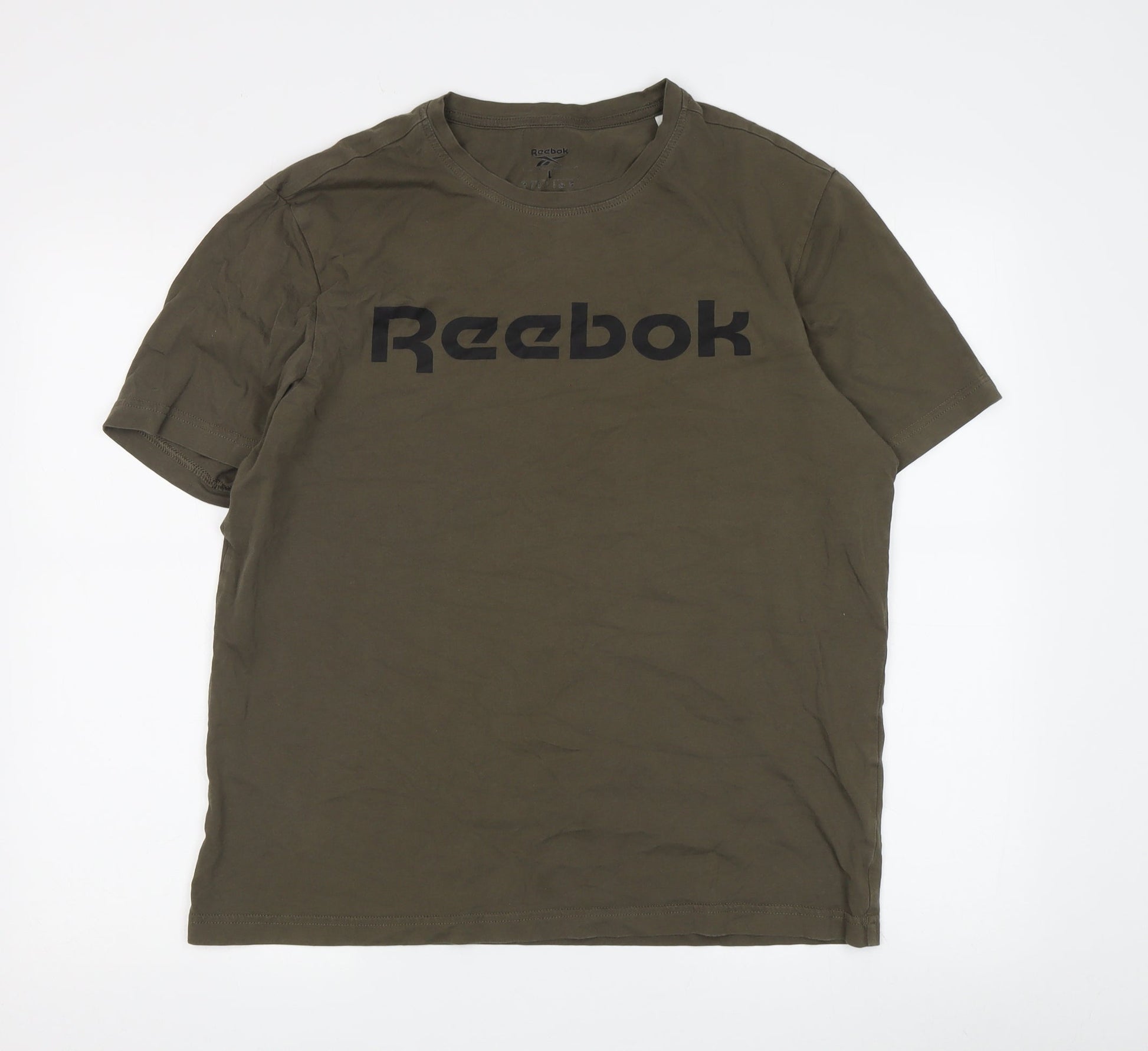 Reebok Men's Green Logo T-Shirt L Crew Neck
