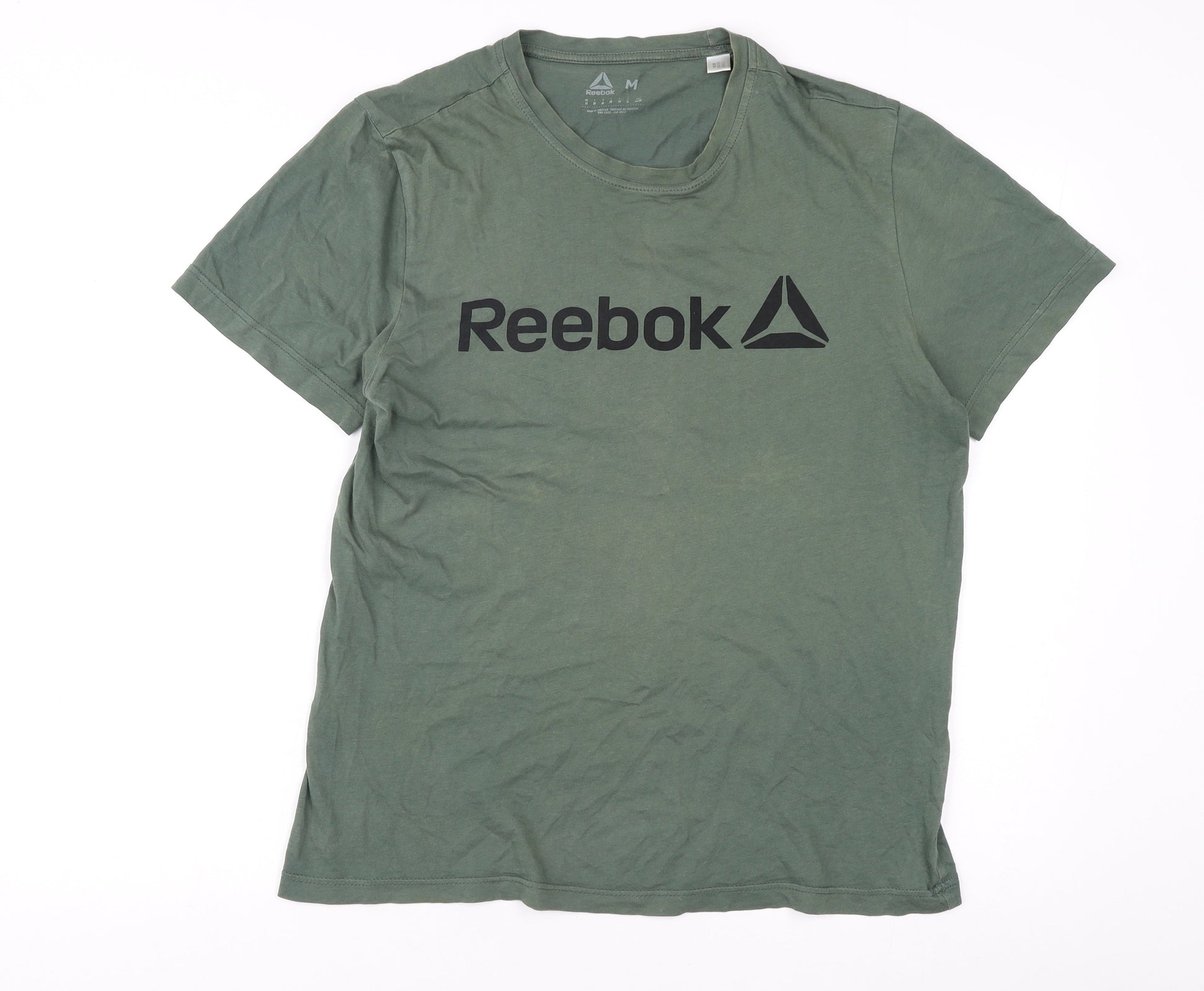 Reebok Men's Green T-Shirt, M, Logo, Cotton, Excellent