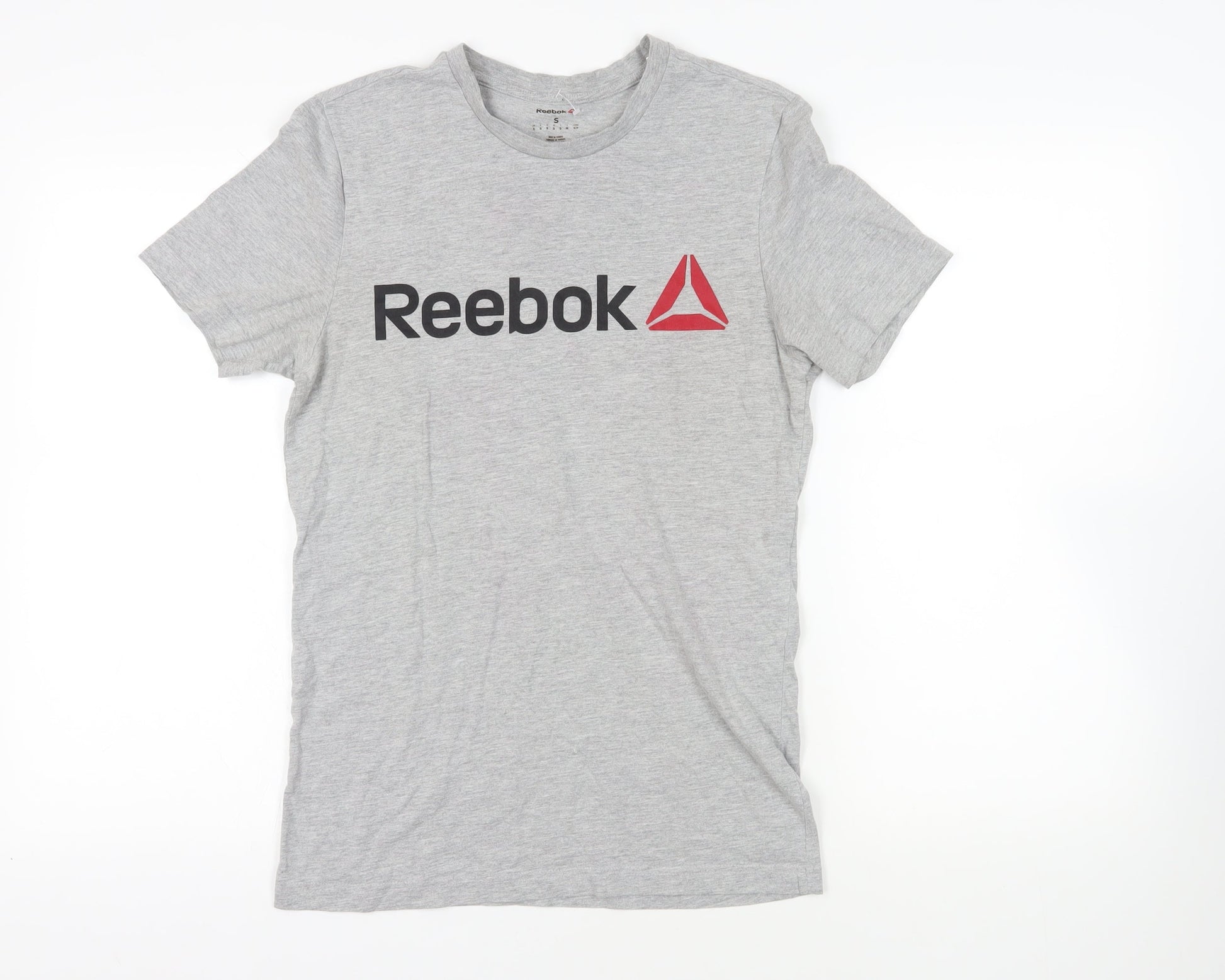 Reebok Mens Grey Cotton T-Shirt Size S Crew Neck - Logo