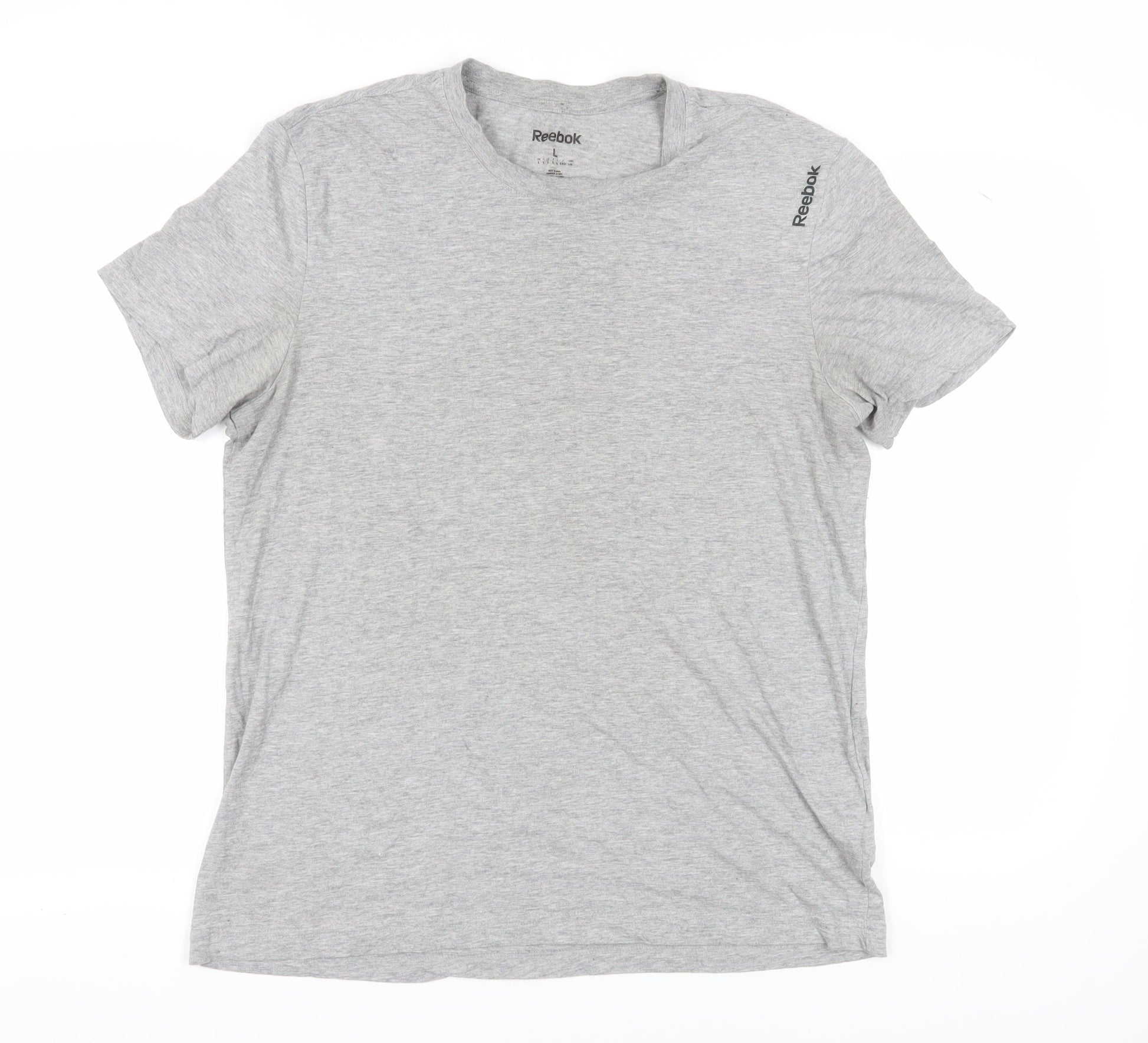 Reebok Men's Grey L Crew Neck T-Shirt, Solid Logo, Excellent