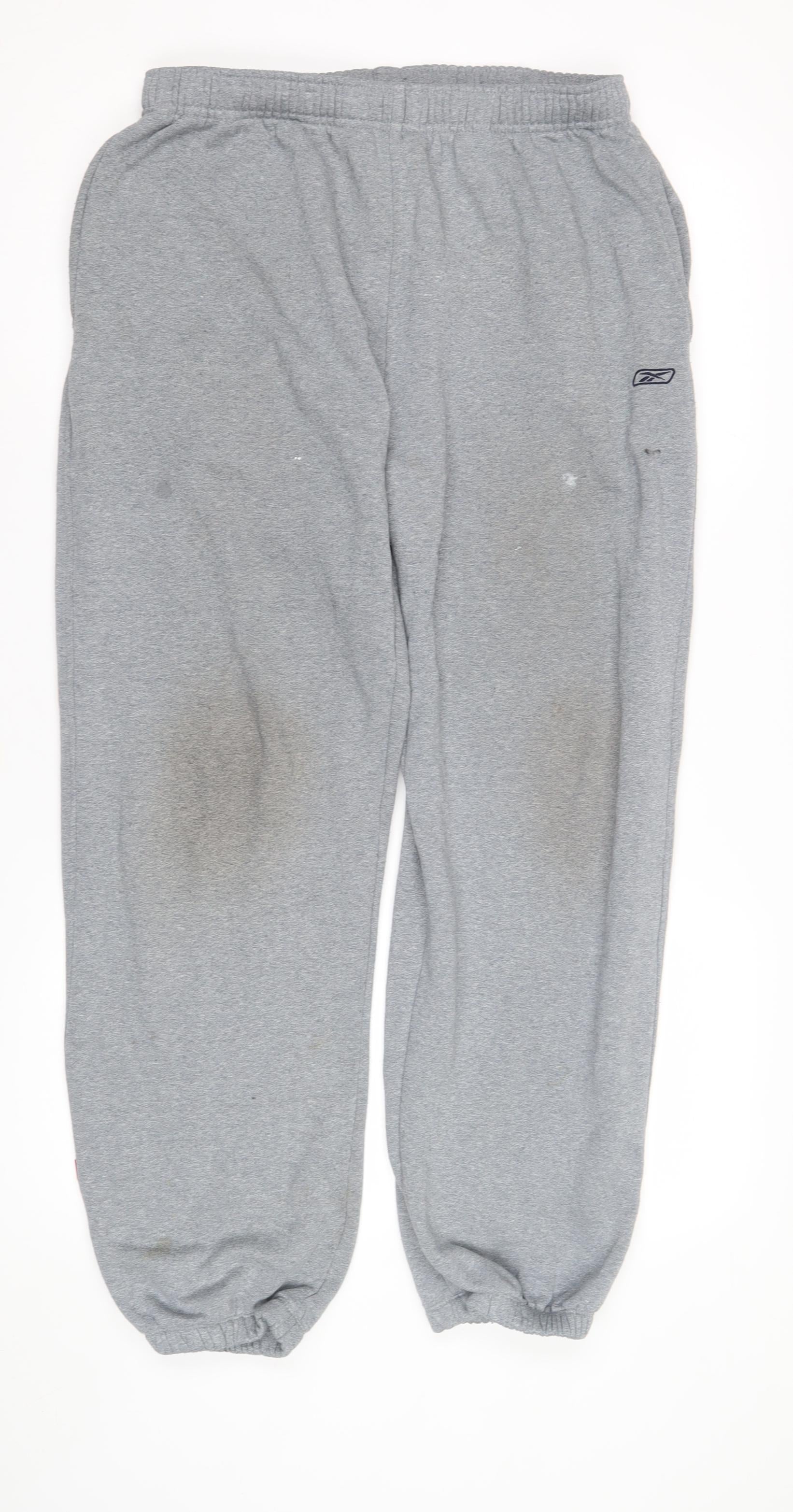 Reebok Men's Grey Sweatpants - Size L, Fleece, Relaxed Fit