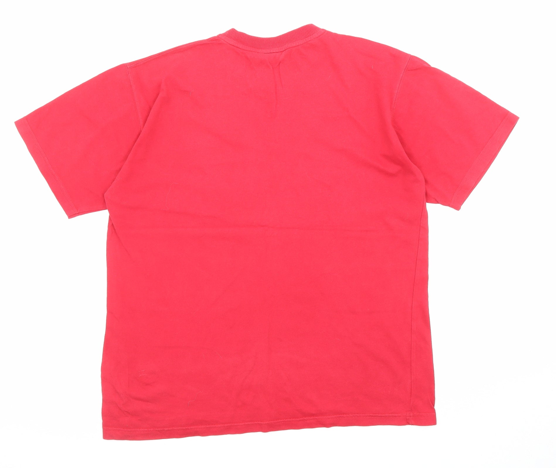 Reebok Mens Red Cotton T-Shirt Size M Roll Neck - Logo