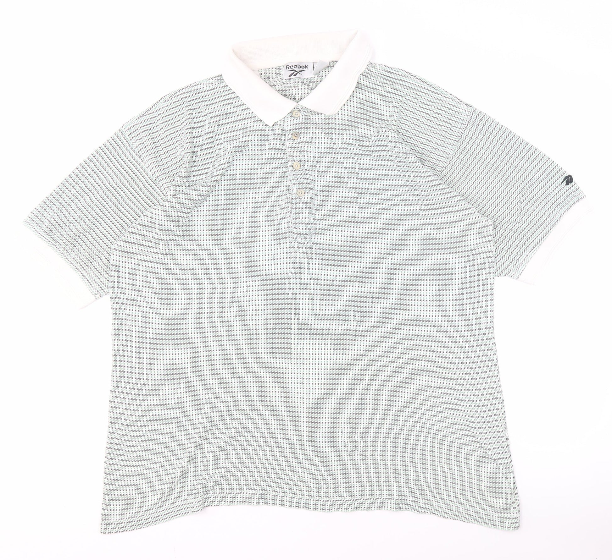 Reebok Men's White Polo Shirt L Short Sleeve Geometric