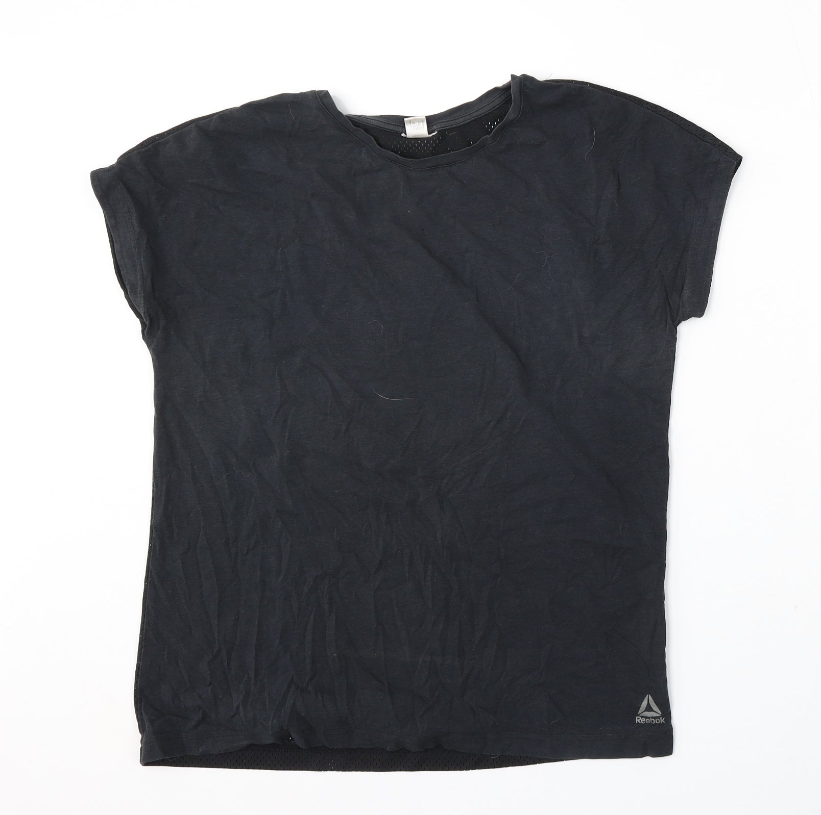 Reebok Womens Black Polyester Basic T-Shirt Size M Round Neck