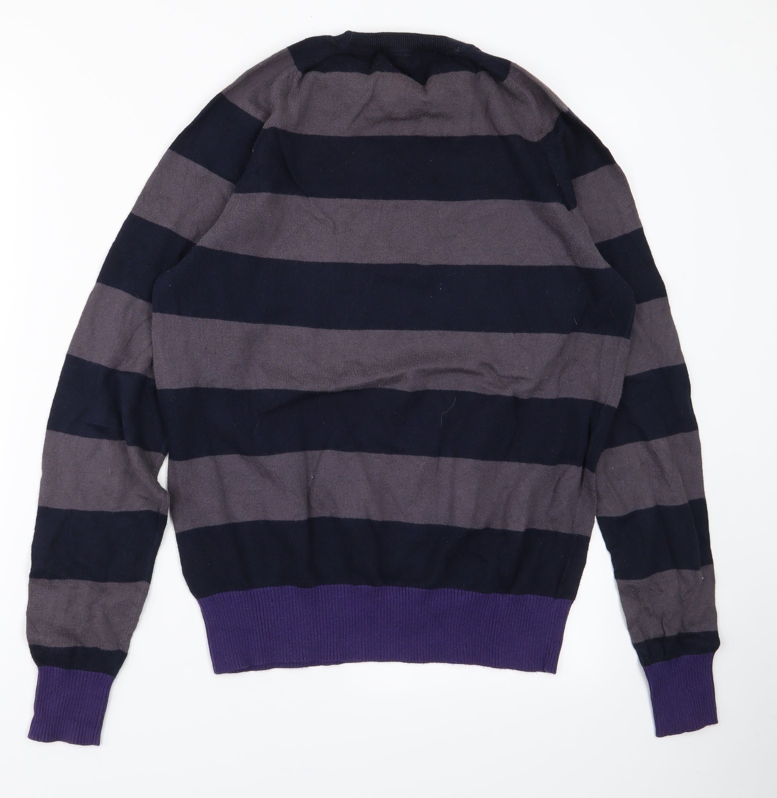 Refectory Mens Grey Striped Knit Pullover Jumper Size S