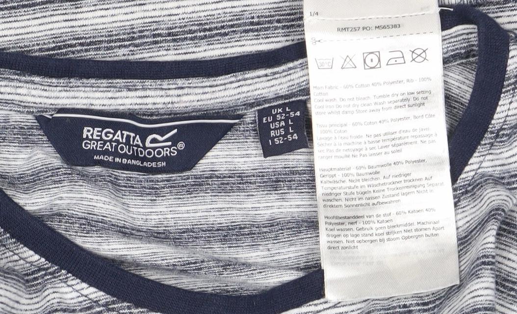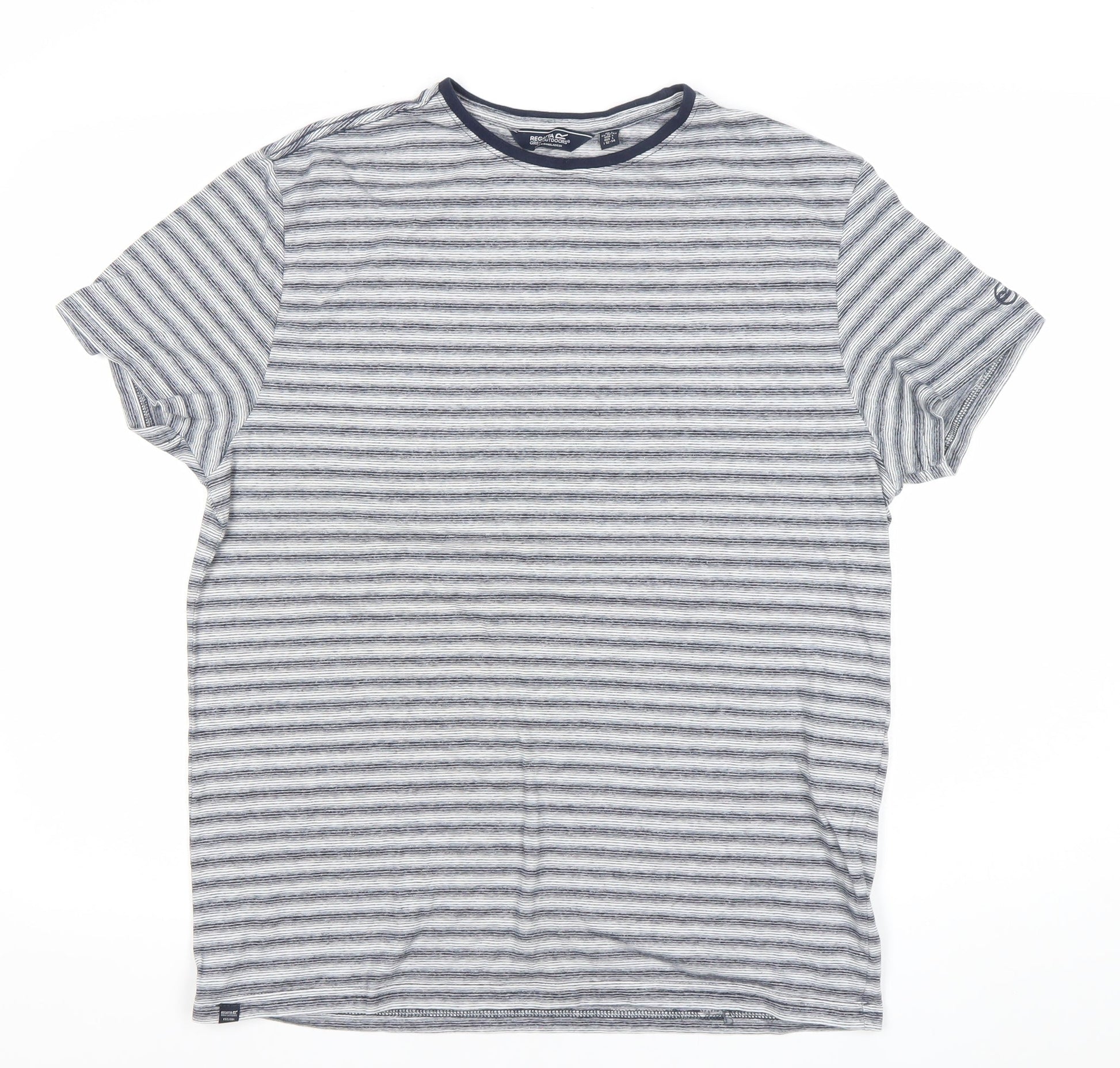 Regatta Men’s Blue Striped Cotton Blend Crew Neck T-Shirt Size L