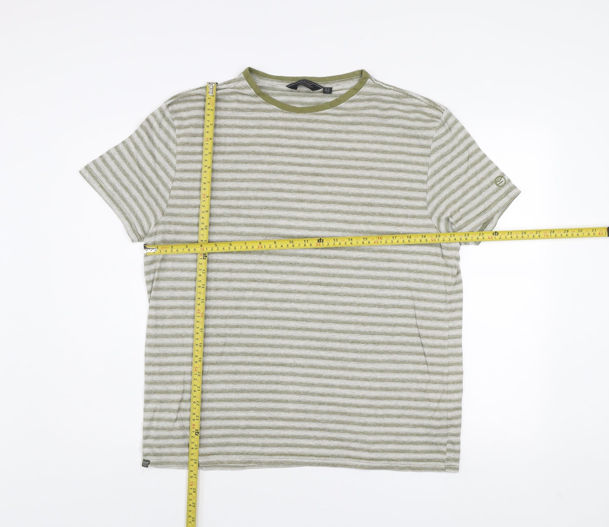 Regatta Men's Green Striped Crew Neck Short Sleeve T-Shirt XL