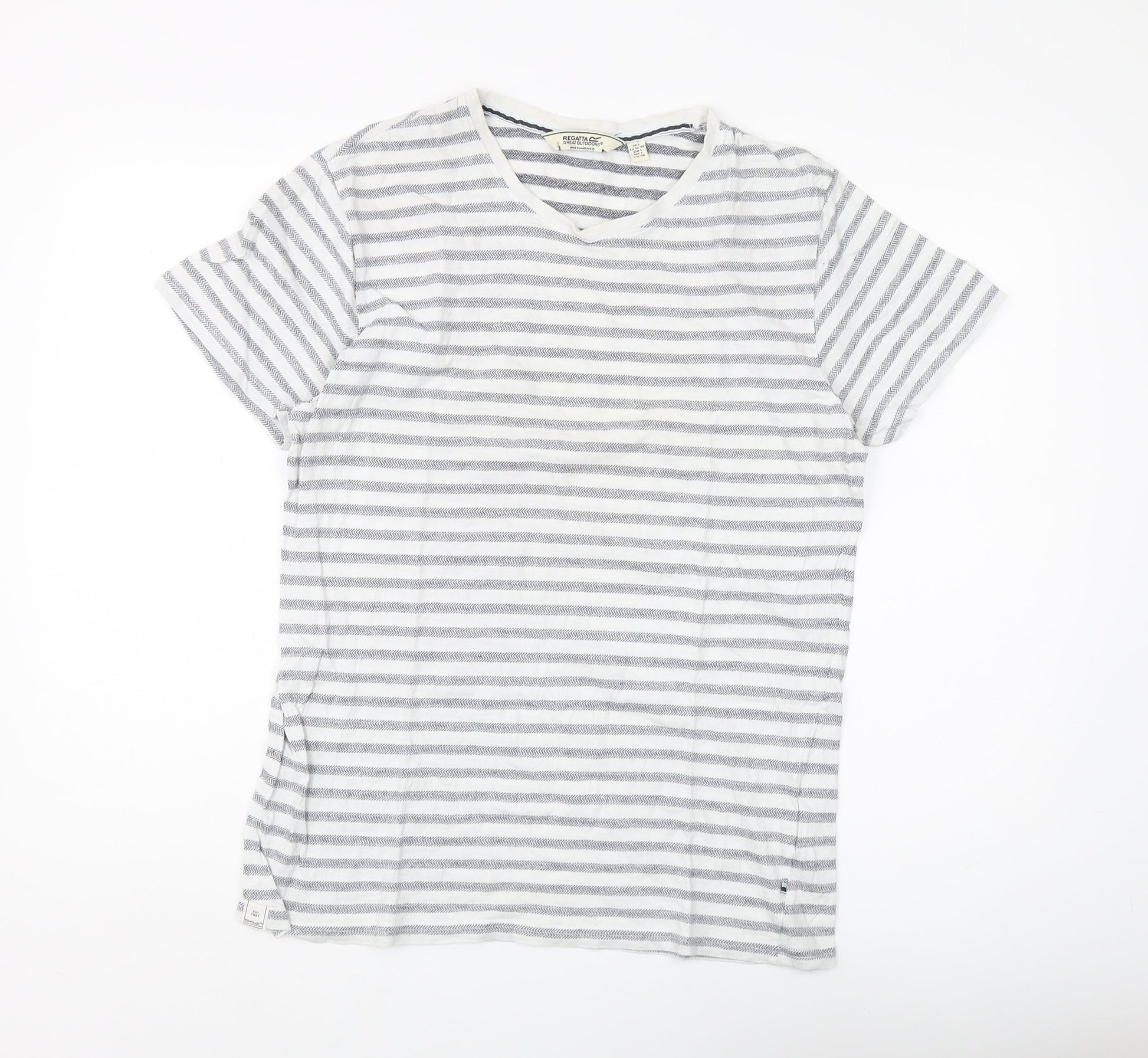 Regatta Men's Grey Striped V-Neck T-Shirt, Size L