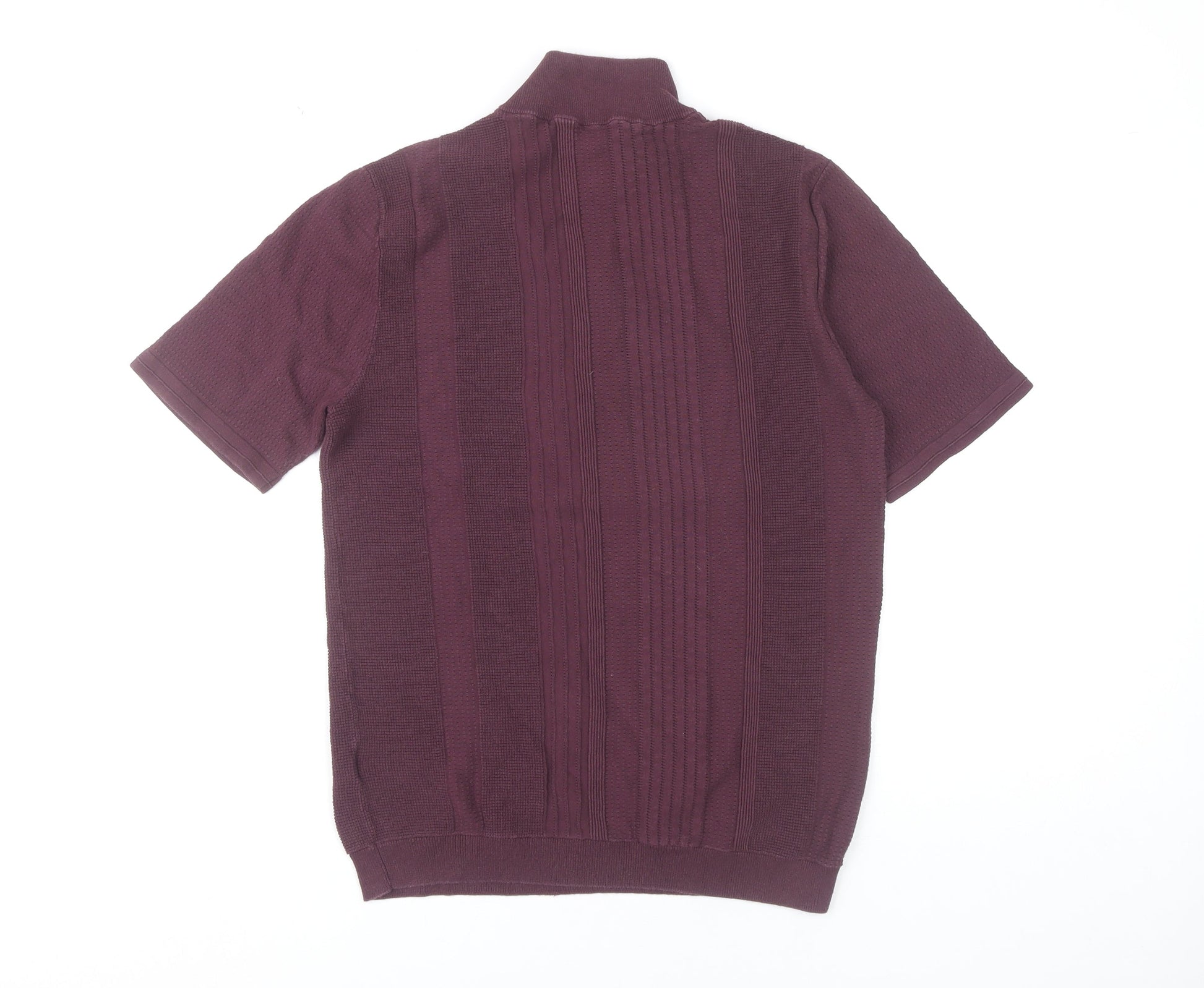 Reiss Men’s Purple Mock Neck Short Sleeve Zip Knit Jumper M