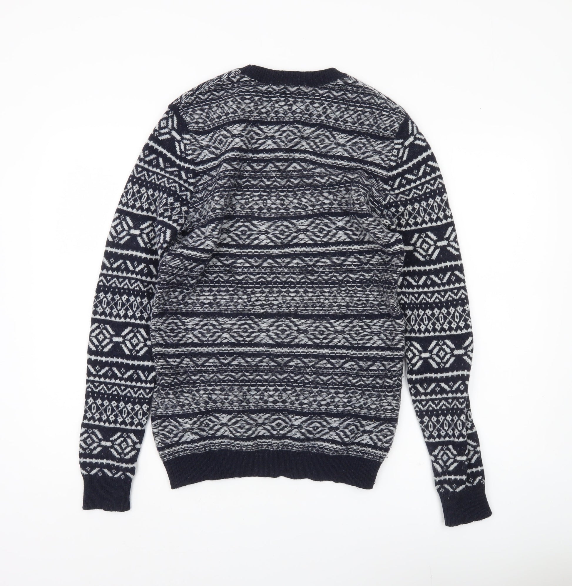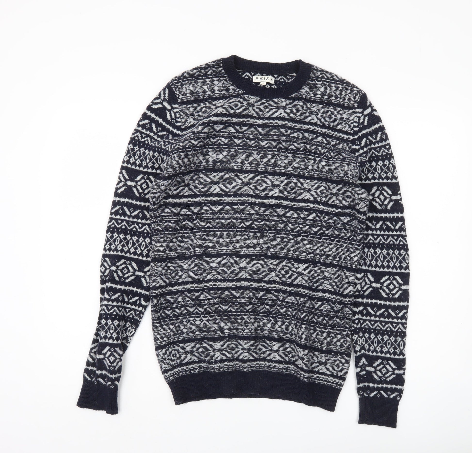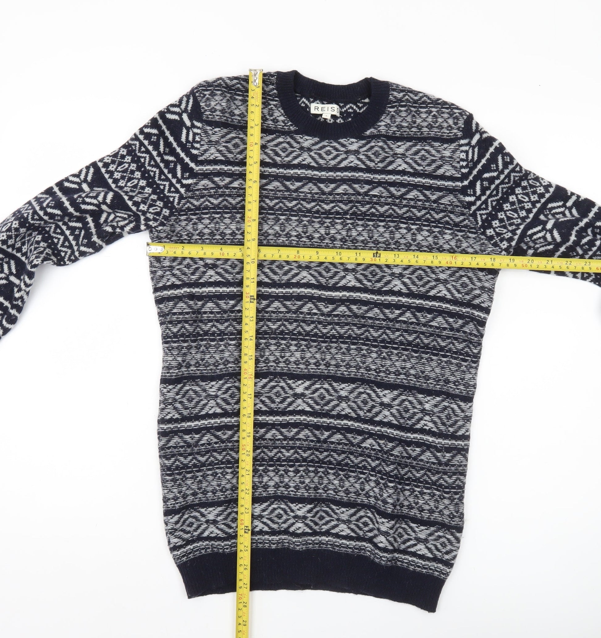 Reiss Men's Blue Fair Isle Wool Blend Jumper Size S Crew Neck