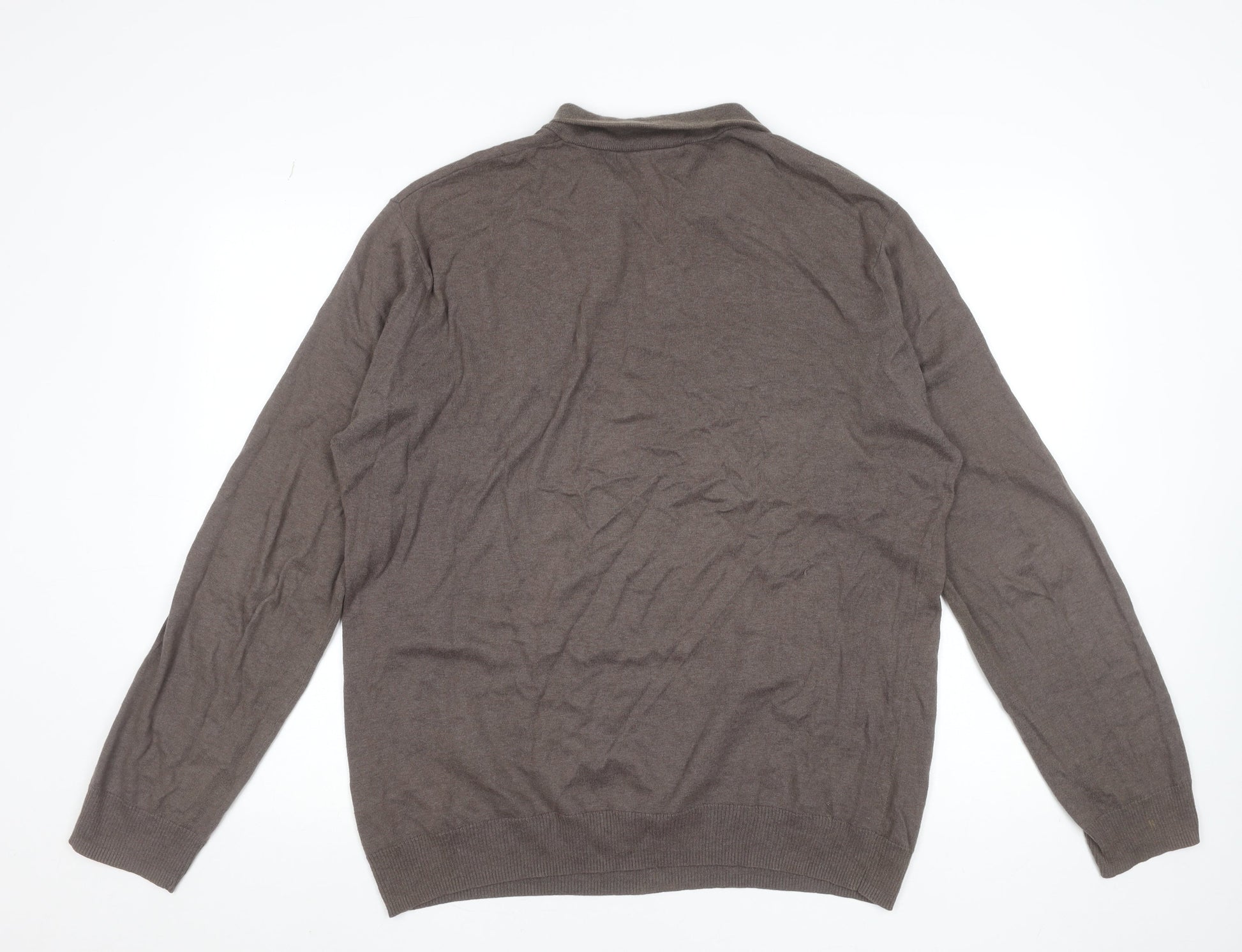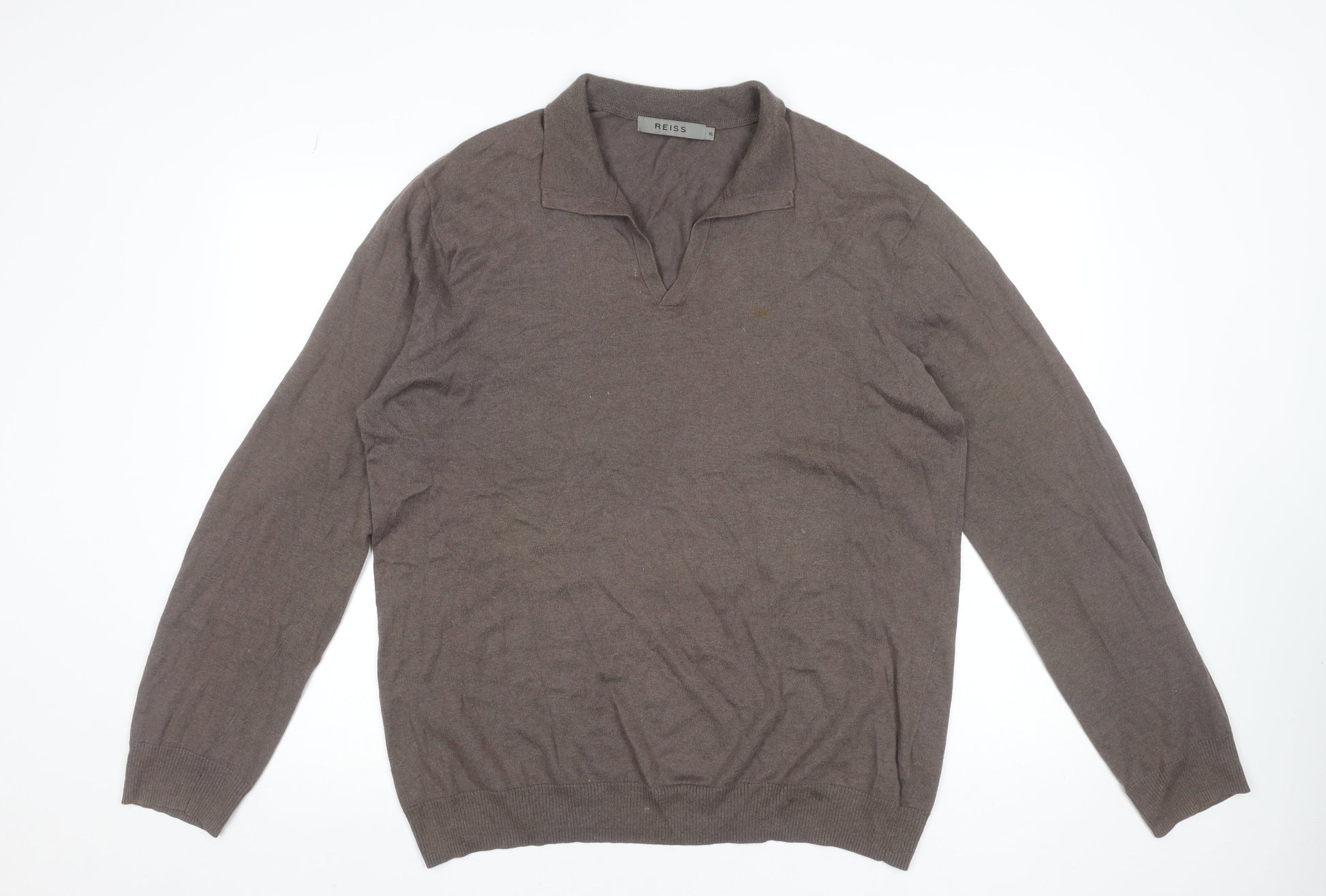 Reiss Men's Brown XL V-Neck Cotton Cashmere Pullover Jumper