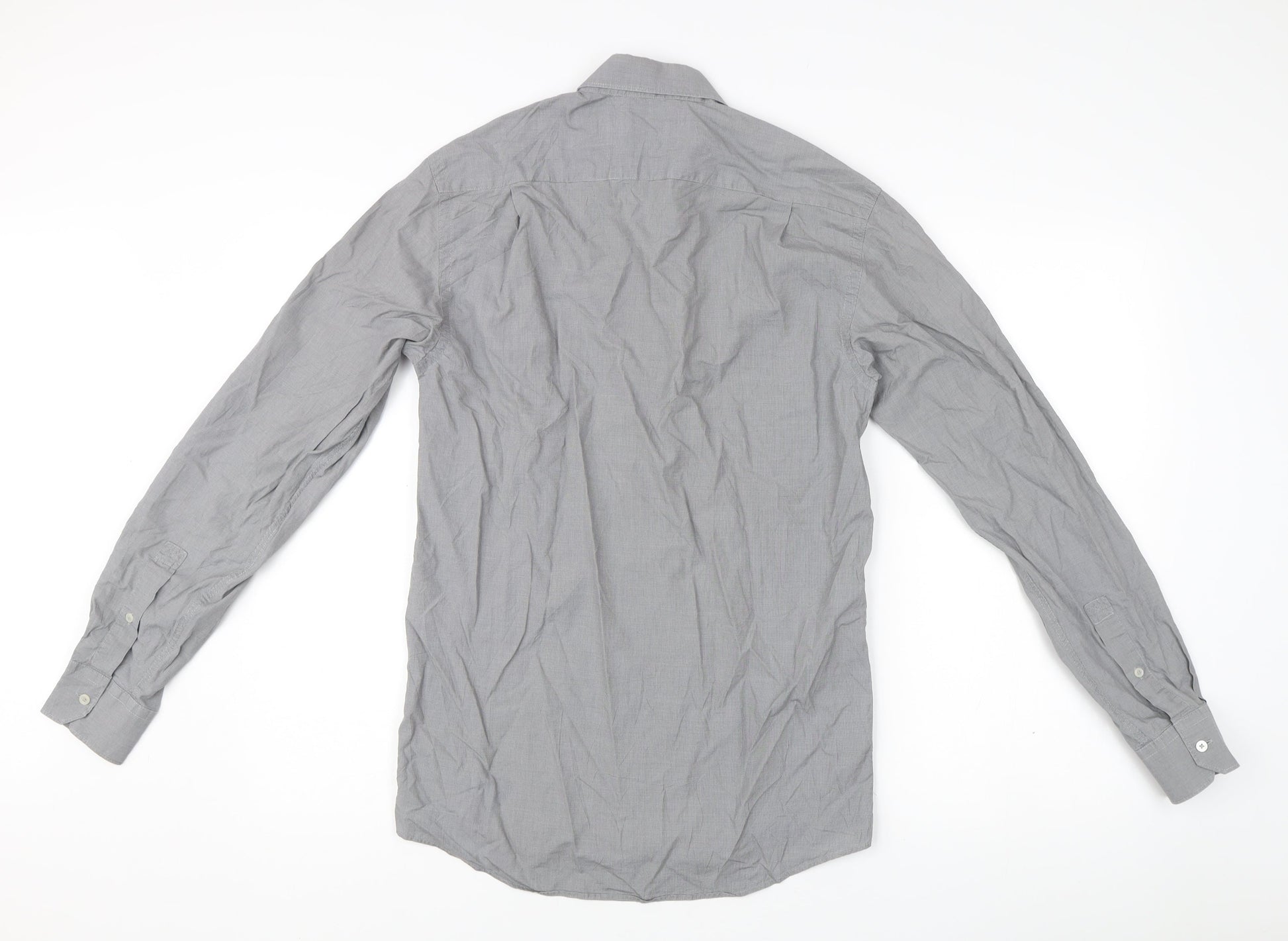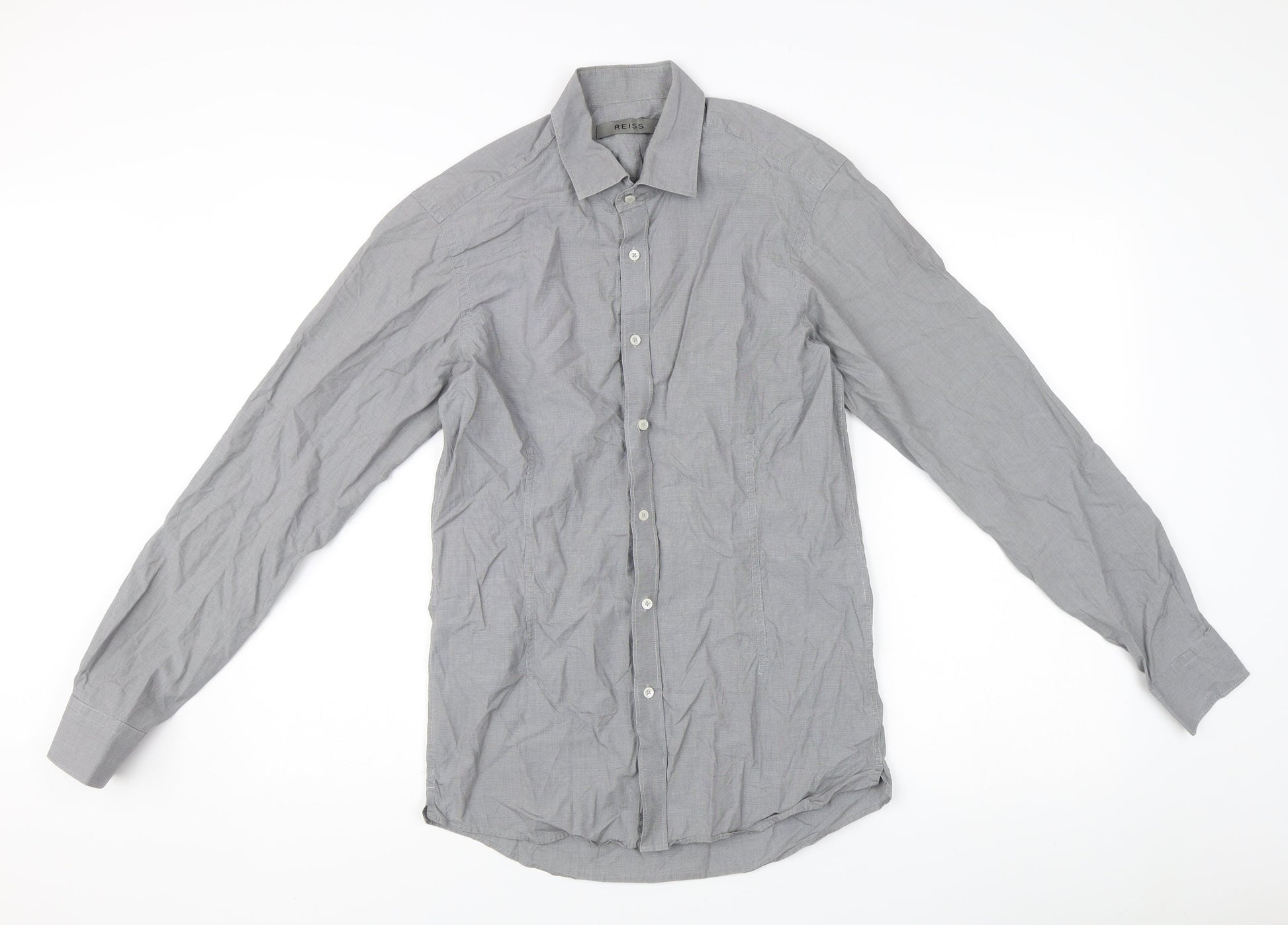 Reiss Men's Grey Check Cotton Long Sleeve Dress Shirt Size S