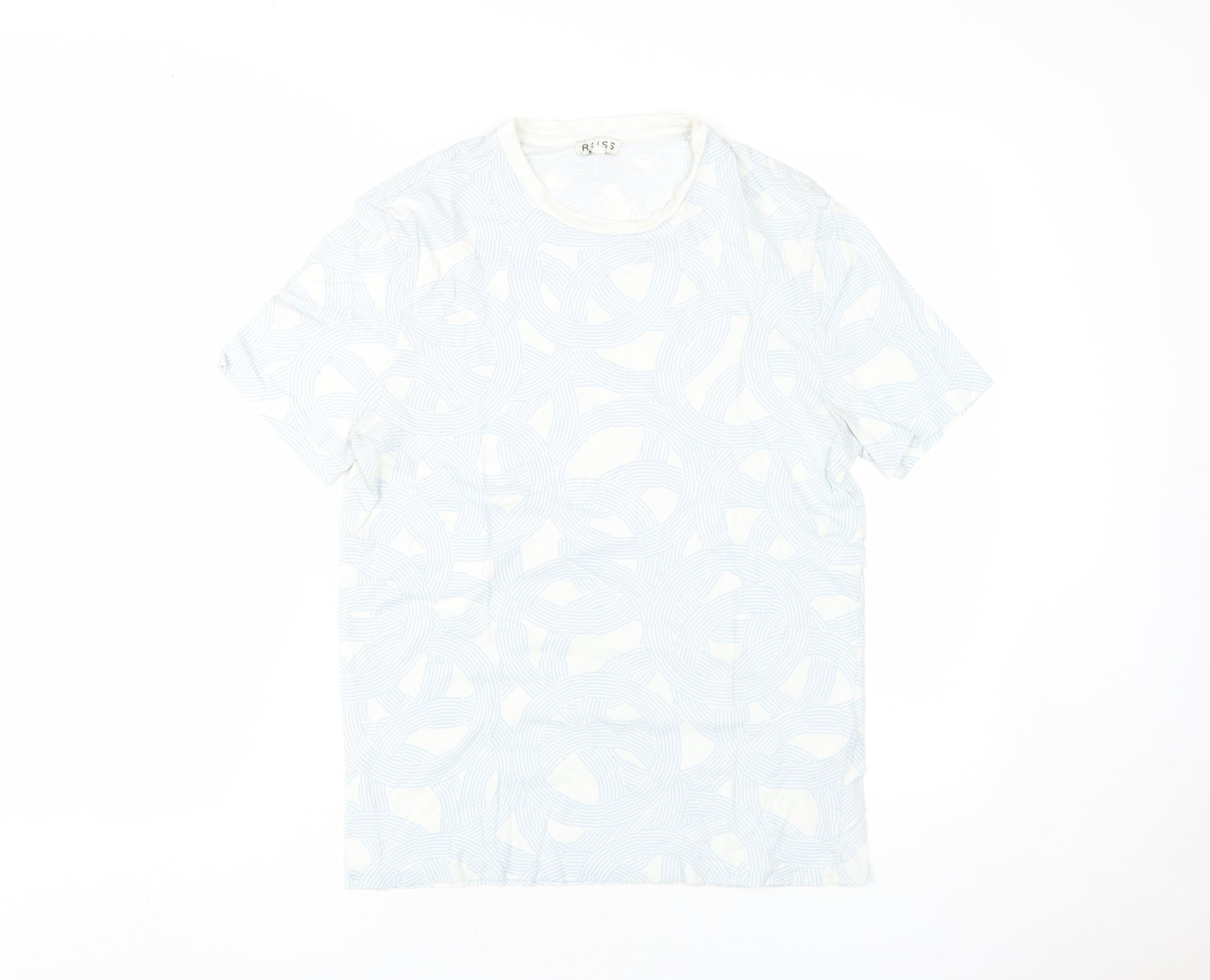 Reiss Men's White Geometric Short Sleeve T-Shirt S