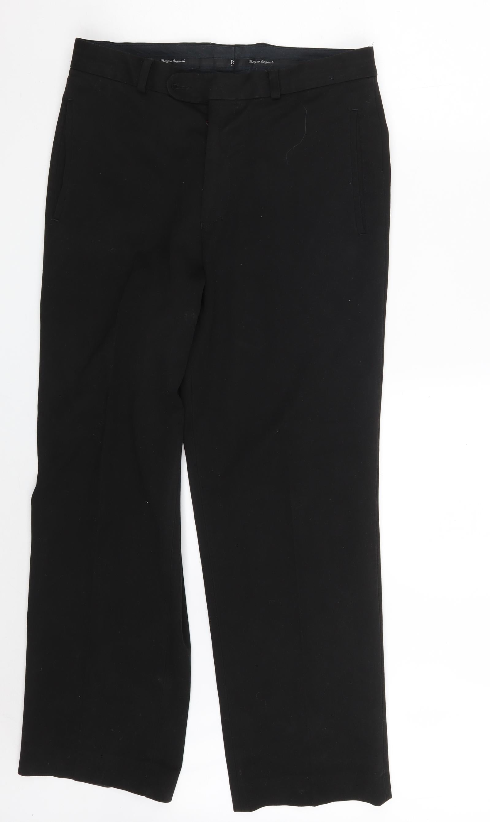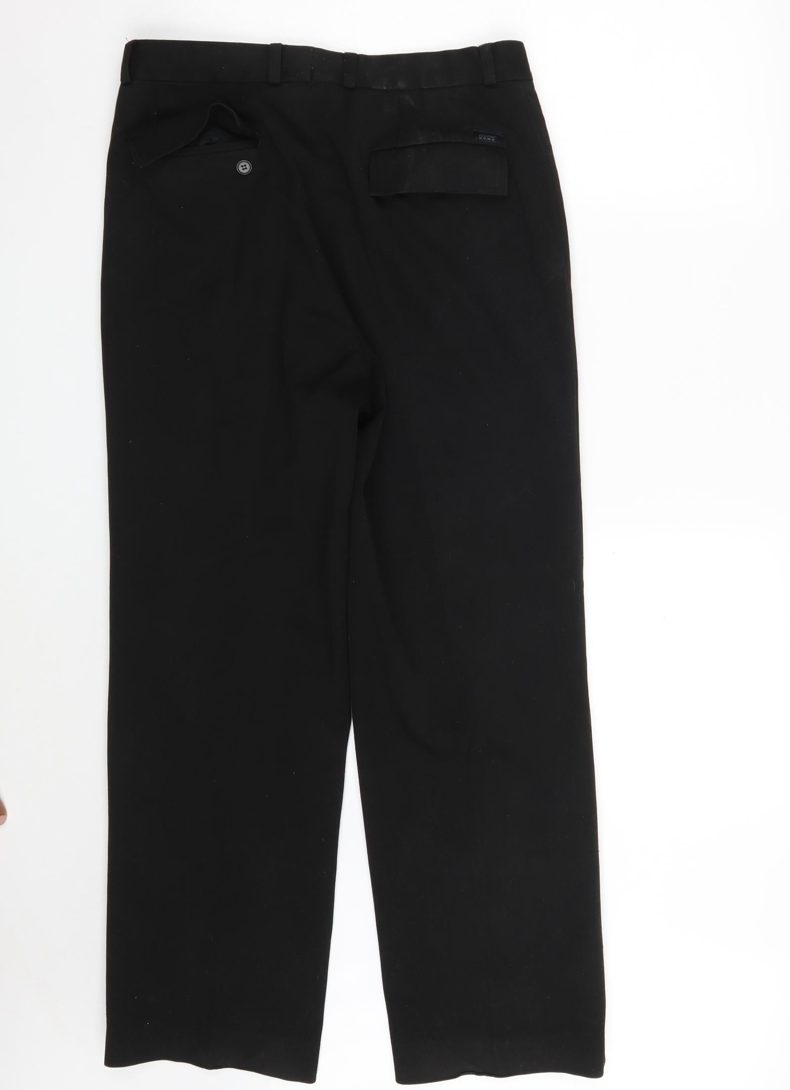 REMUS Mens Black Polyester Trousers Size 32 in L29 in Regular Zip