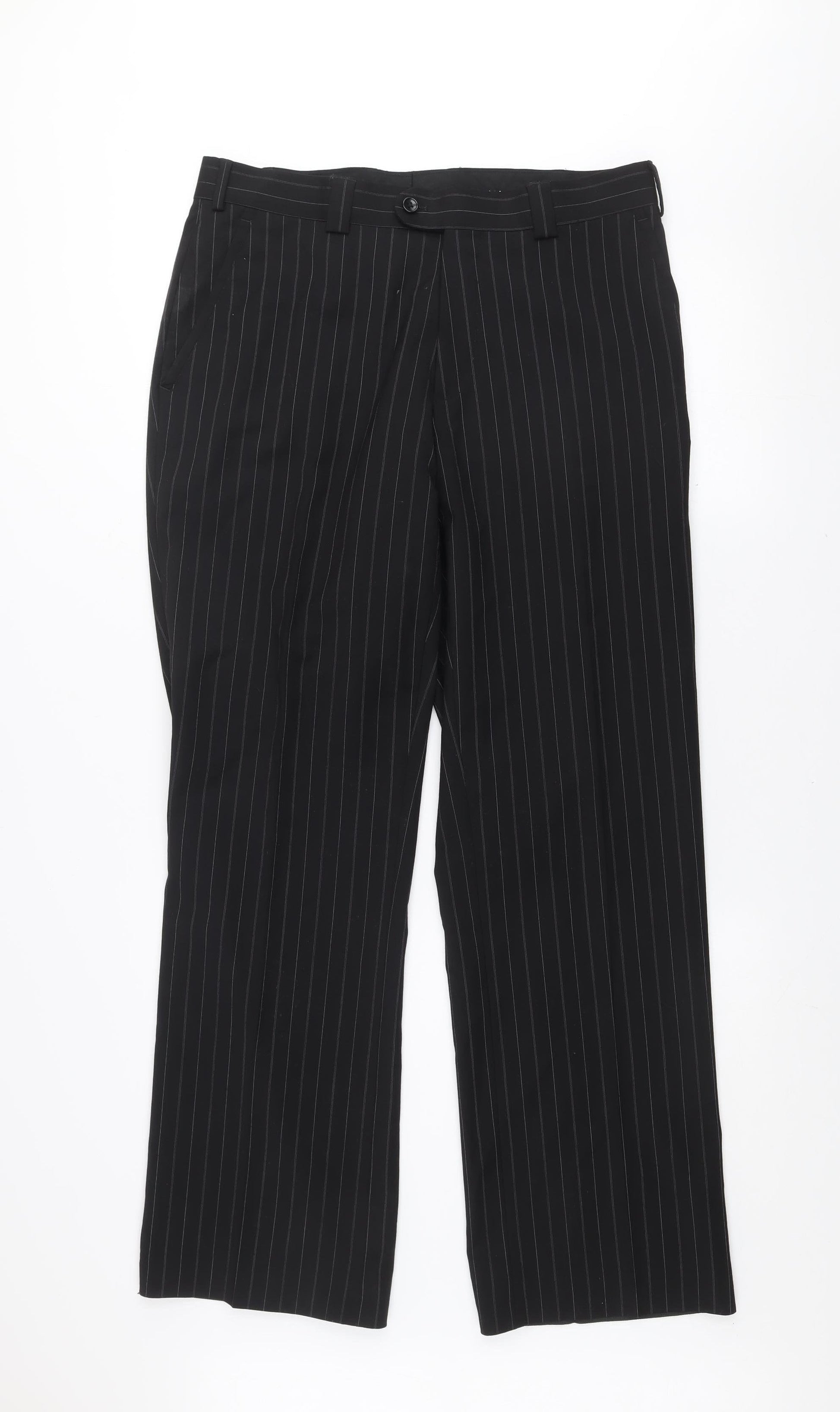 Remus Uomo Men's Black Pinstripe Wool Dress Trousers 40R
