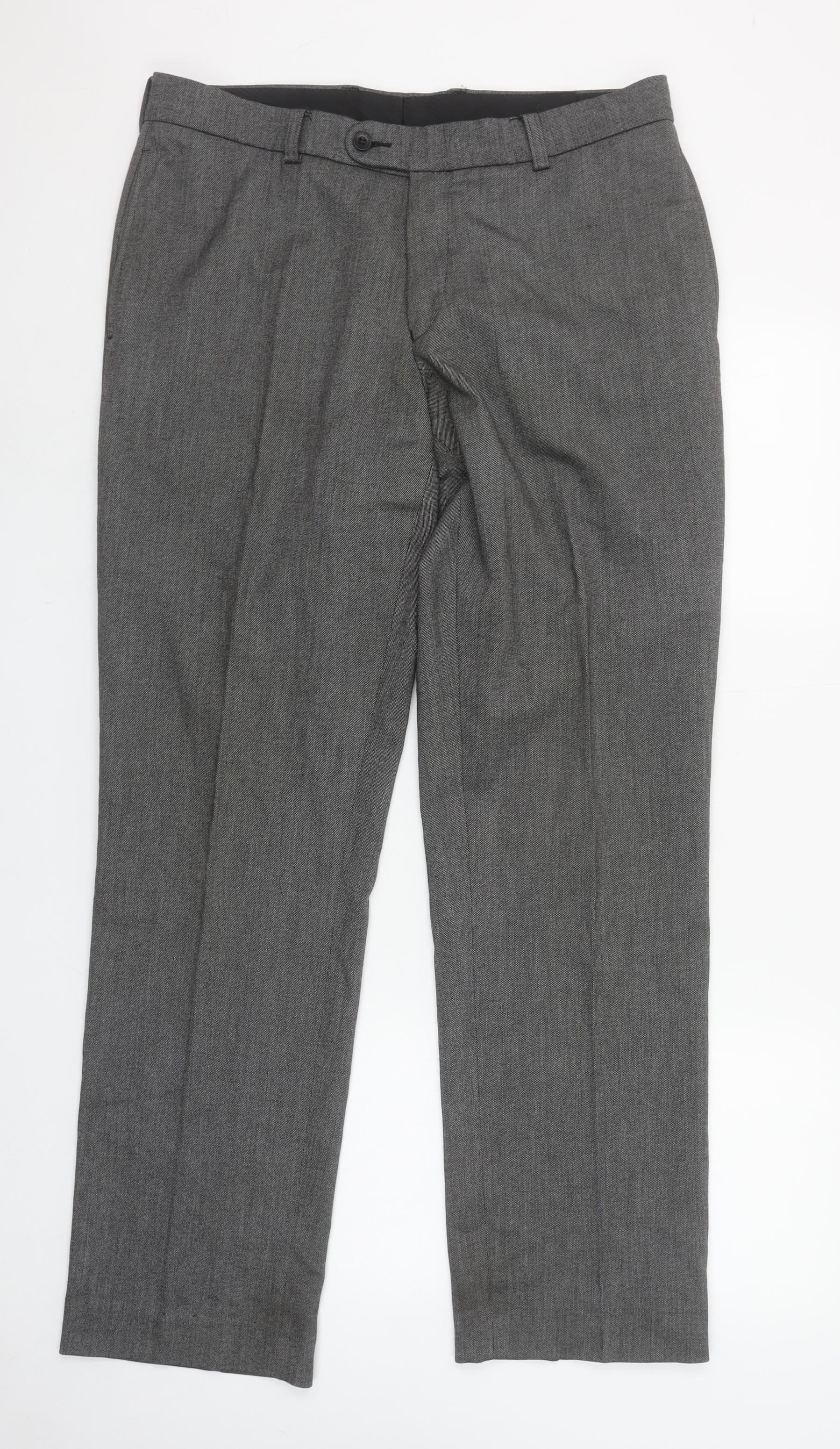 Remus Uomo Men's Grey Wool Blend Dress Pants 34R Straight Leg Formal Trousers