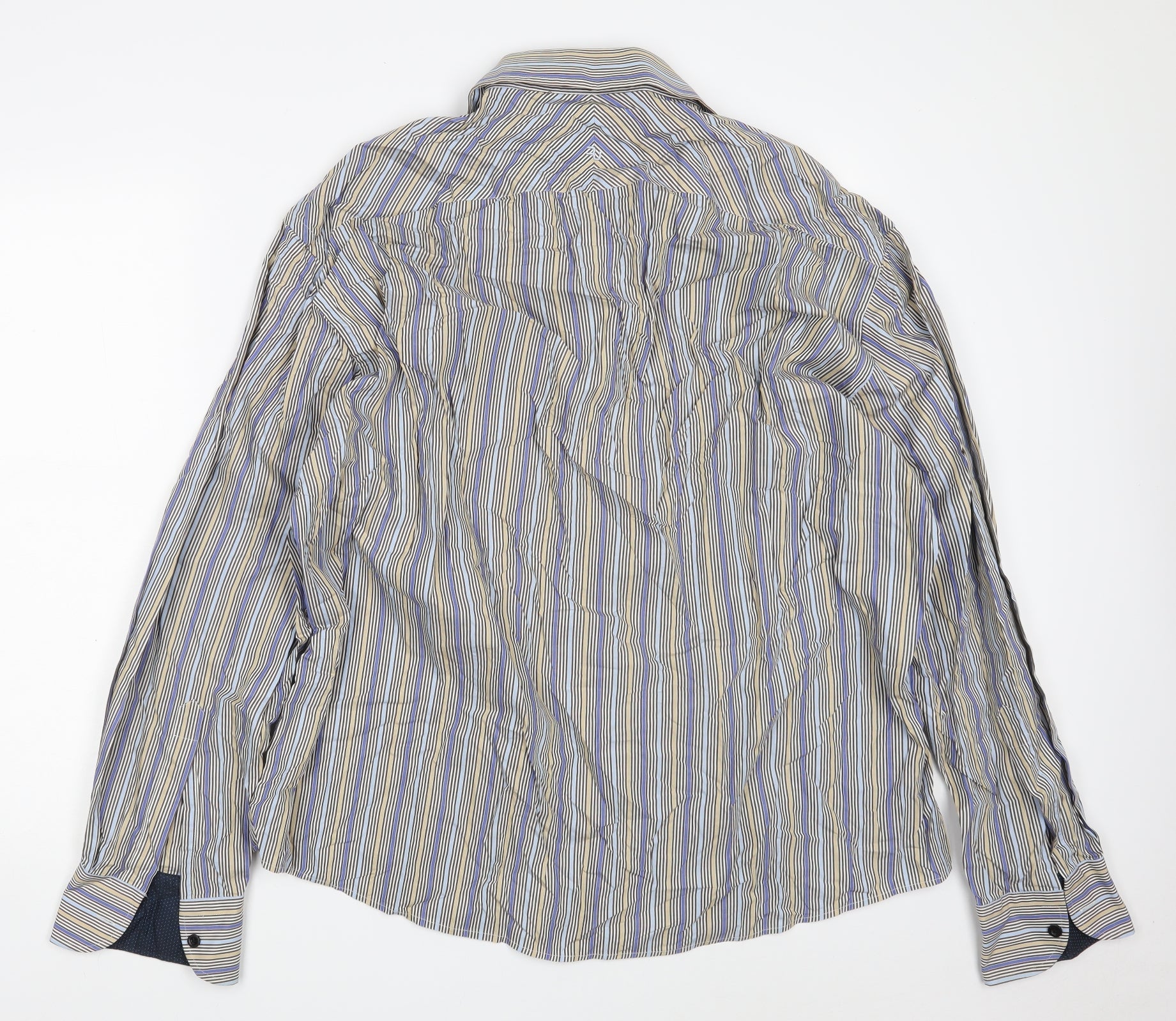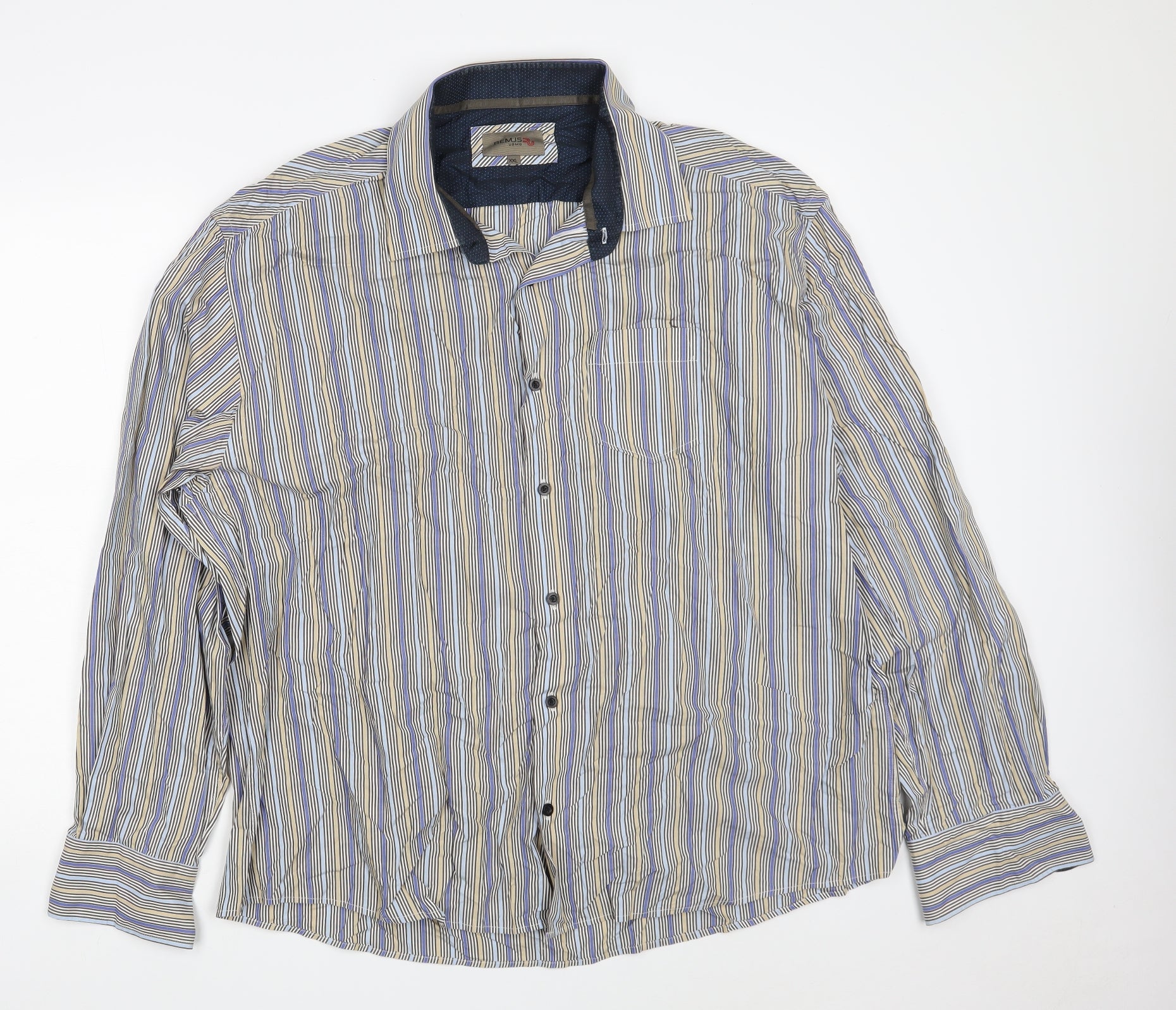 REMUS UOMO Mens Multicoloured Striped Cotton Button-Up Size 2XL Collared Button
