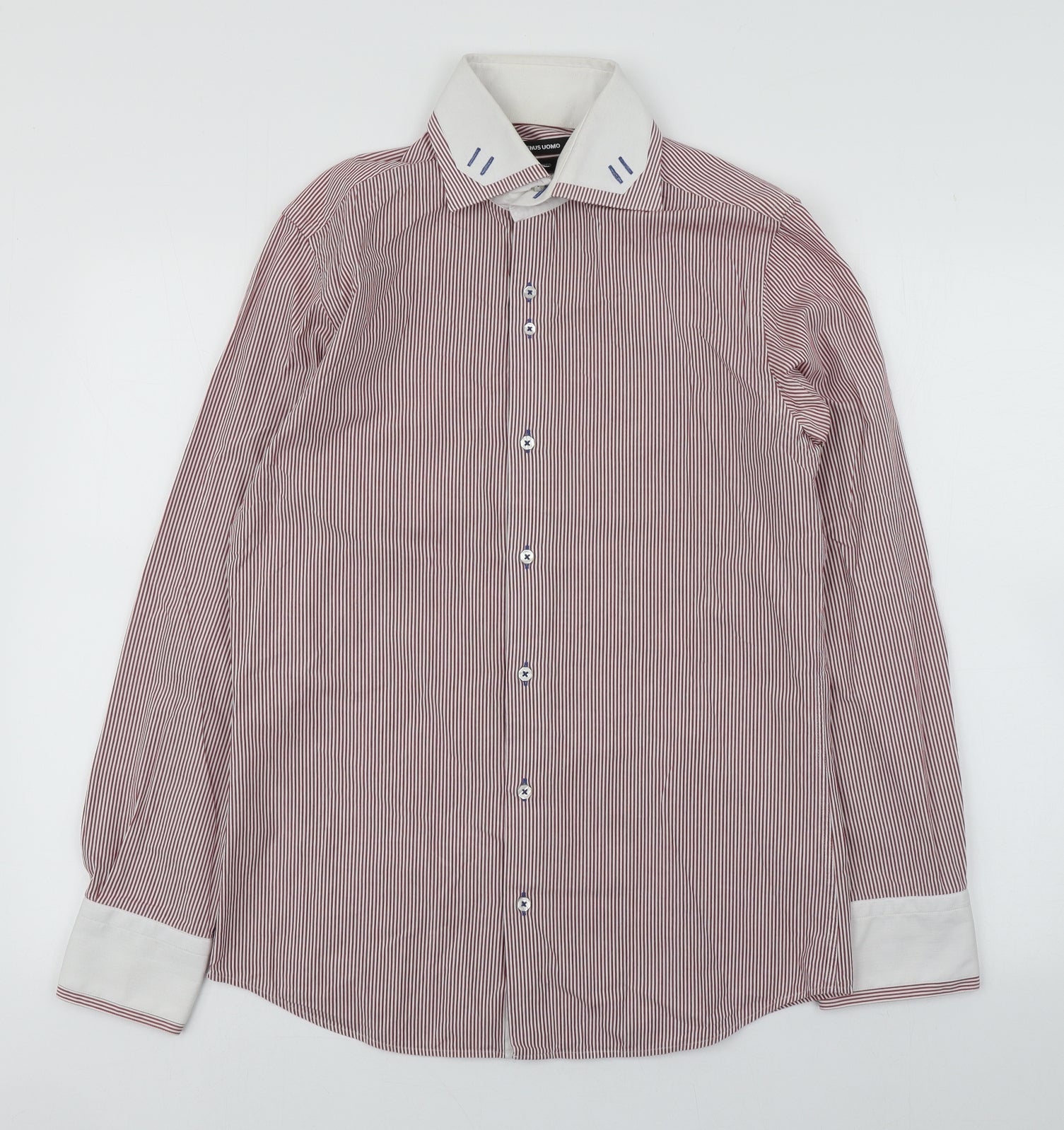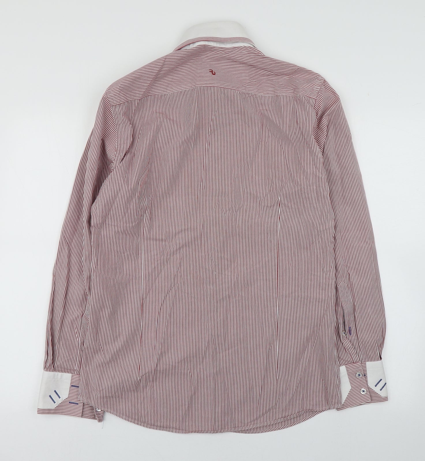 Remus Uomo Mens Red Striped Polyester Dress Shirt Size M Collared Button