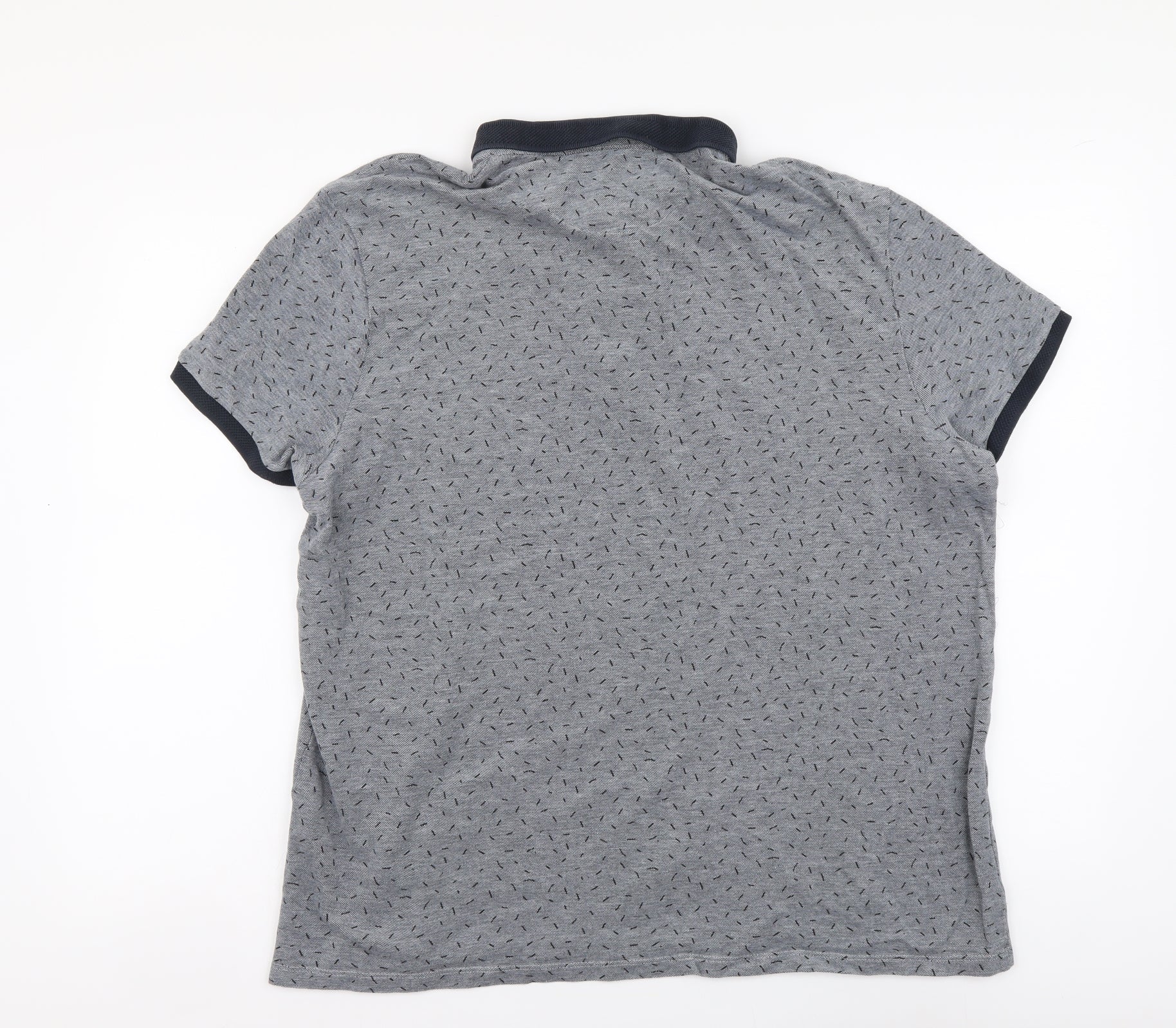 RESERVED Mens Grey Geometric Cotton Polo Size 2XL Collared Button