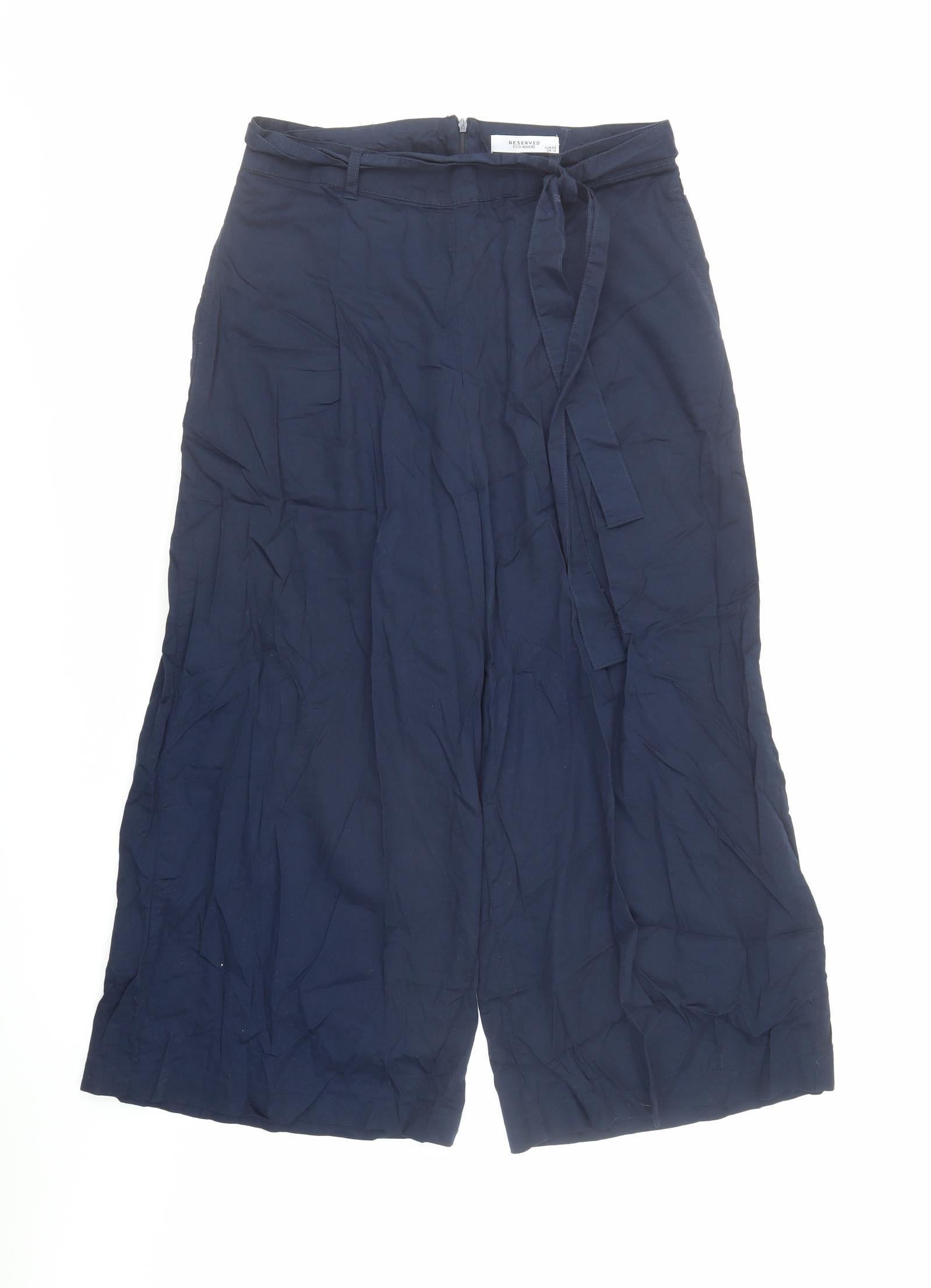 RESERVED Womens Blue Cotton Cropped Trousers Size 12 L24 in Regular Zip - Belted