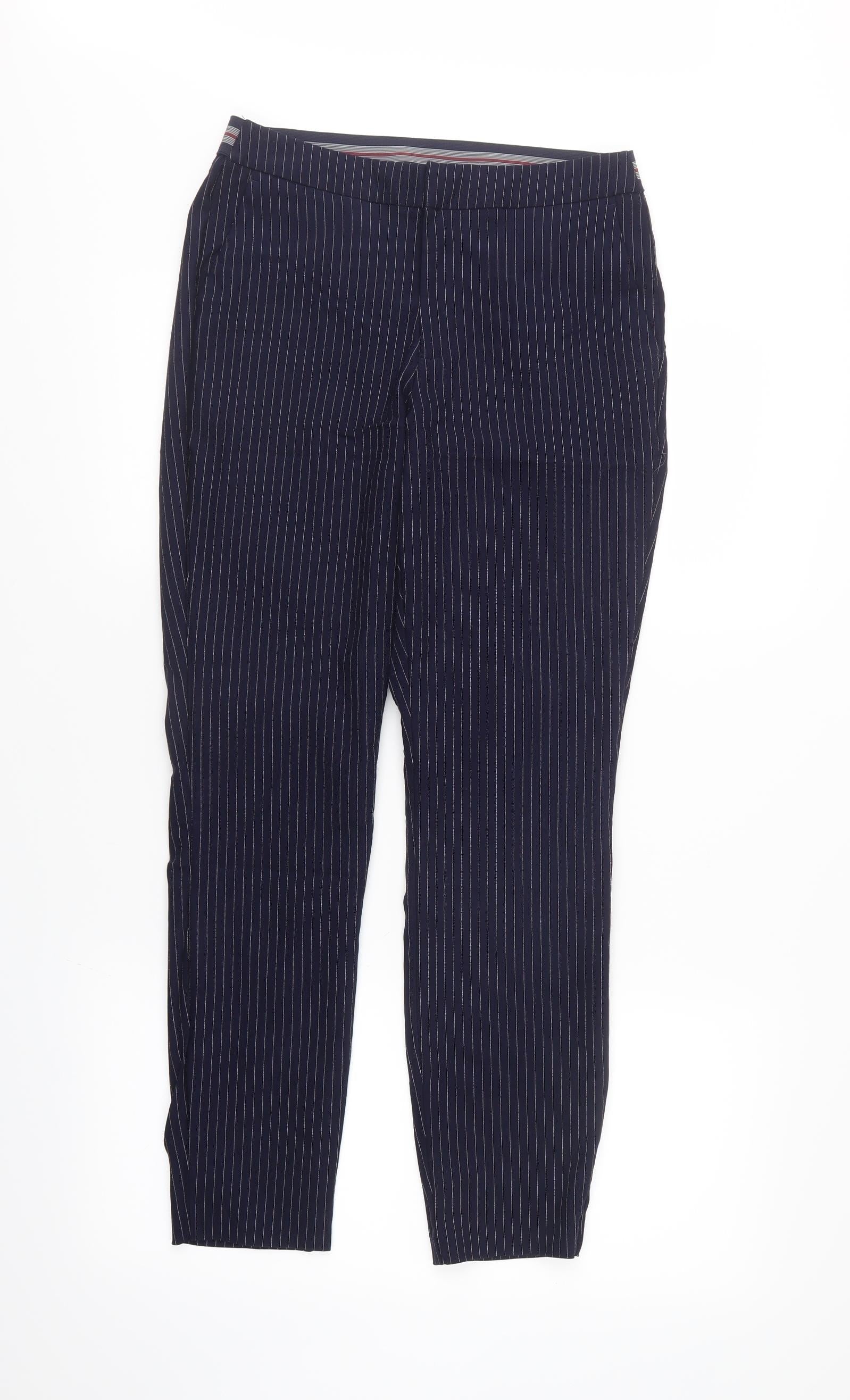 RESERVED Womens Blue Striped Trousers Size 10 L27 in - elastic waist