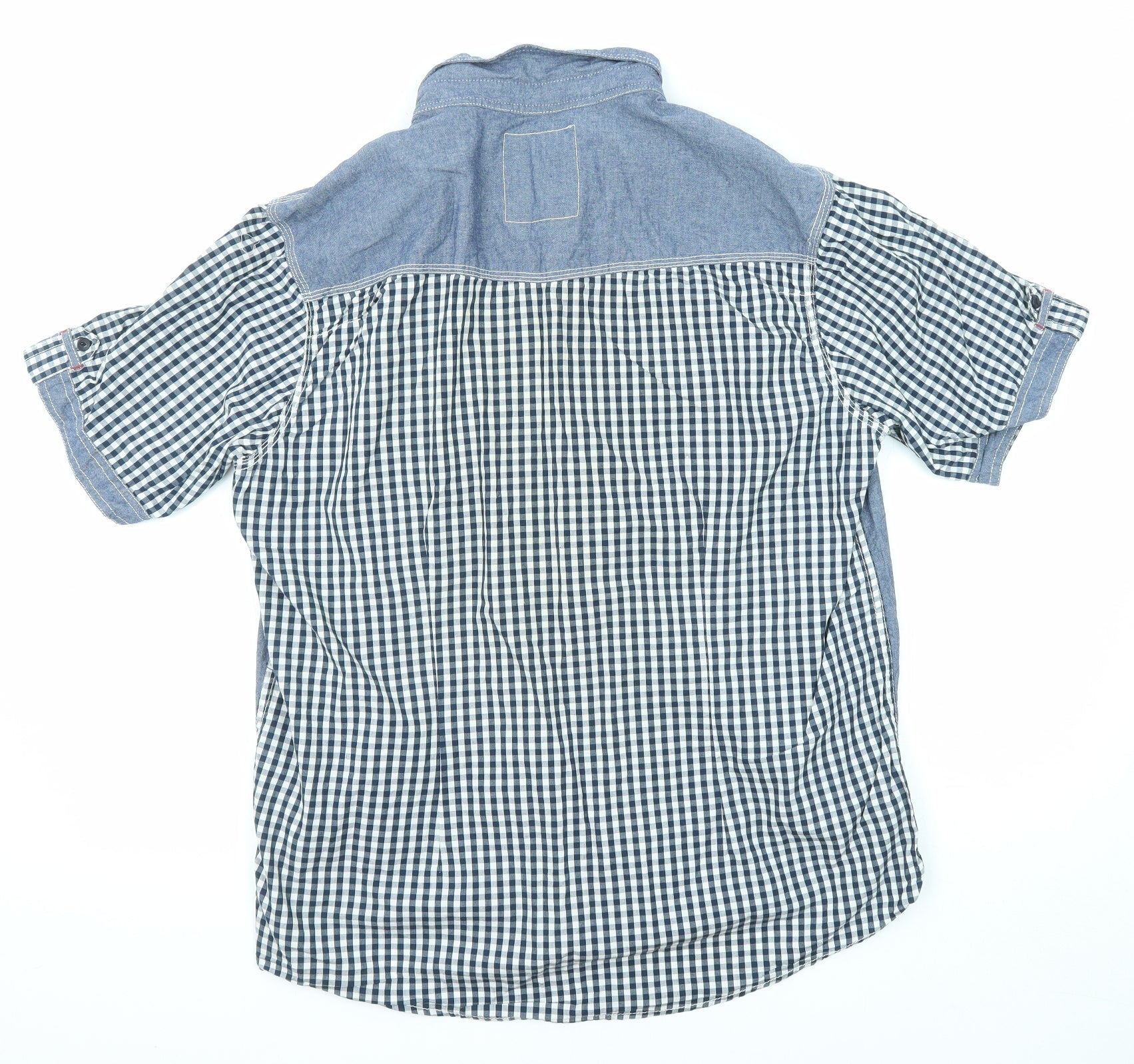 Resistance Mens Blue Check Cotton Button-Up Size XL Collared Button