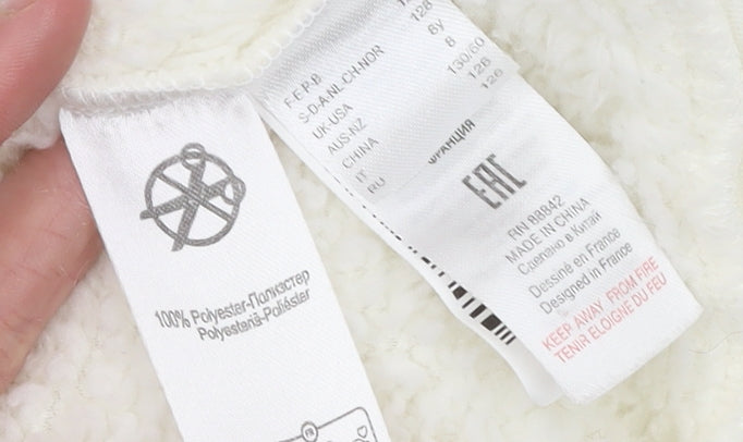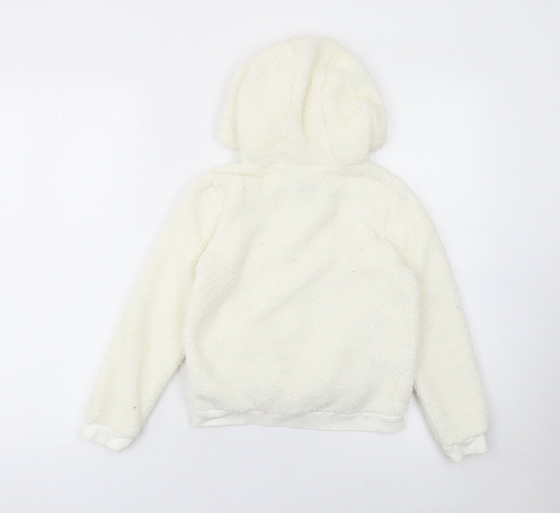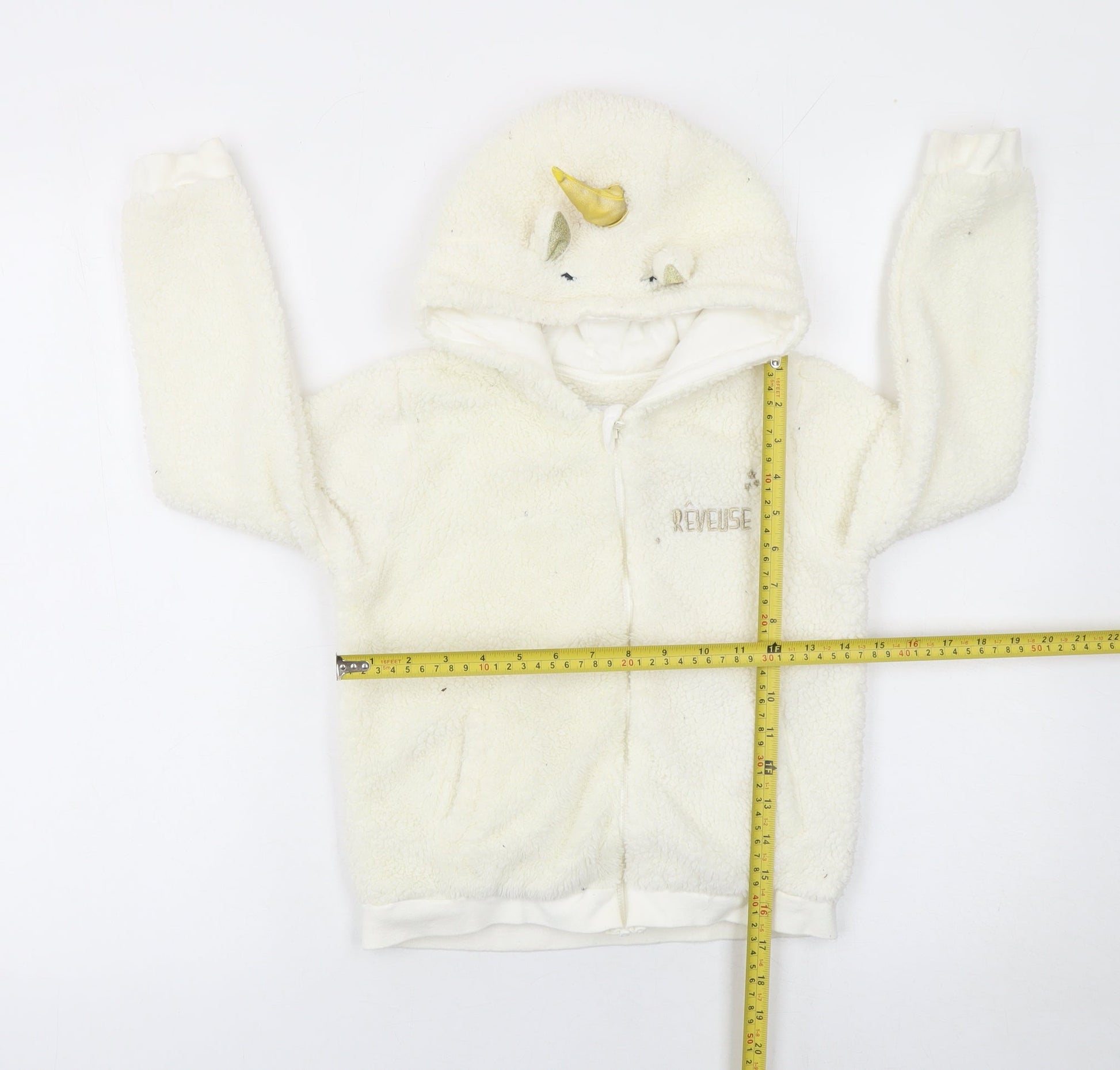 Reveuse Girls Ivory Unicorn Hooded Fleece Jacket Age 8 Long Sleeve Zip-Up